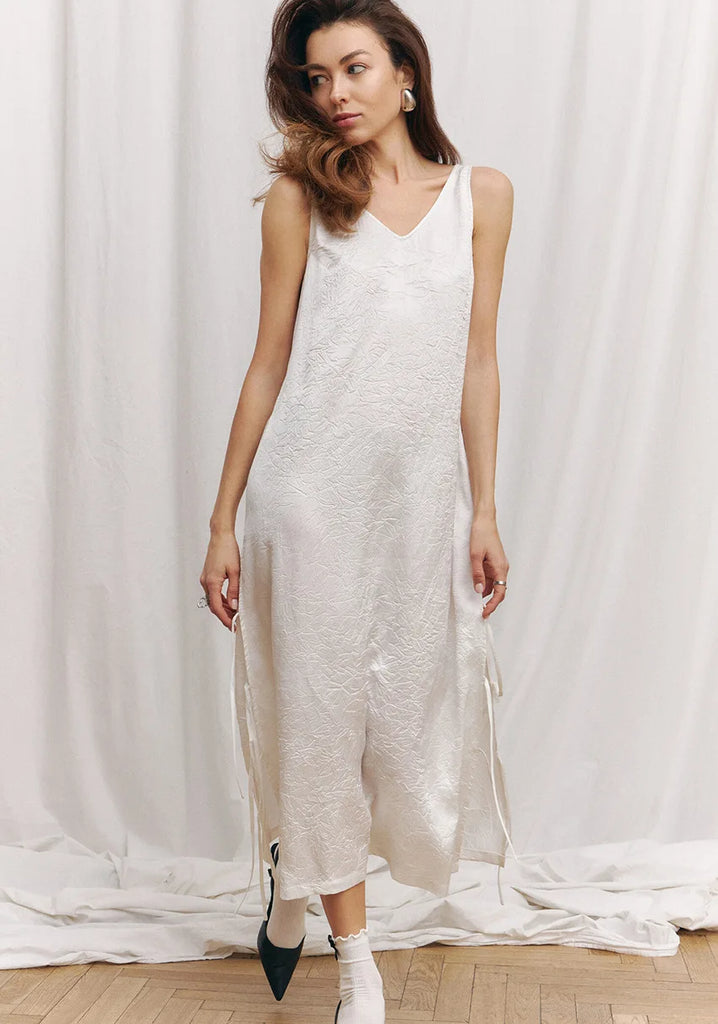 2025 New Bandage Sleeveless Satin Long Dress Solid Color Simple Casual Loose White Pajamas Summer Homewear Sleepwear Dresses