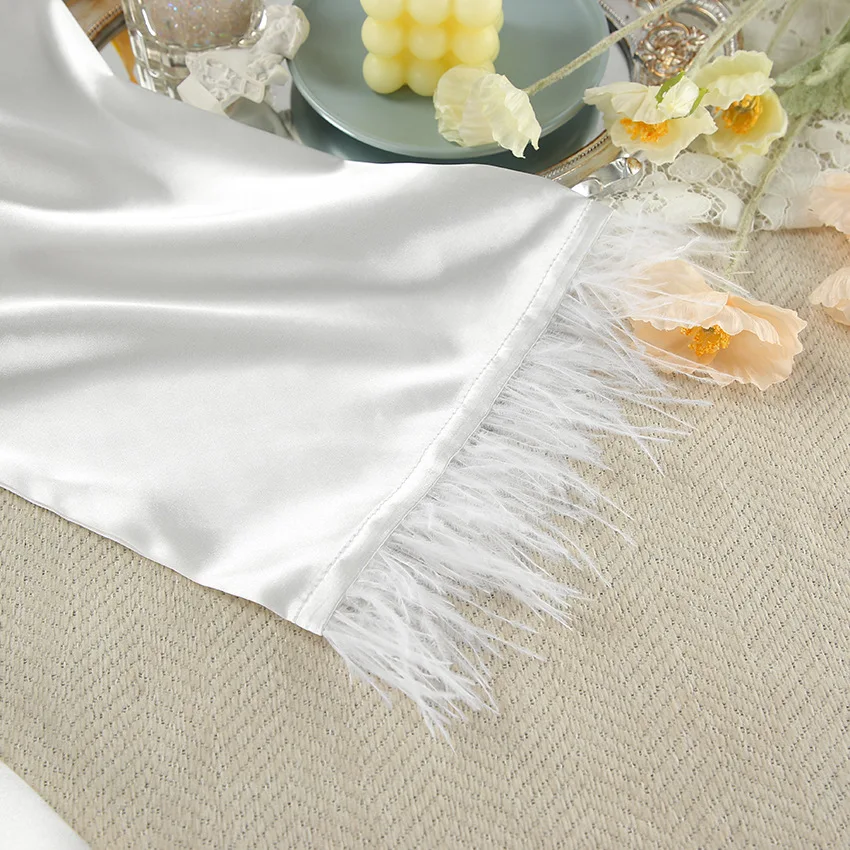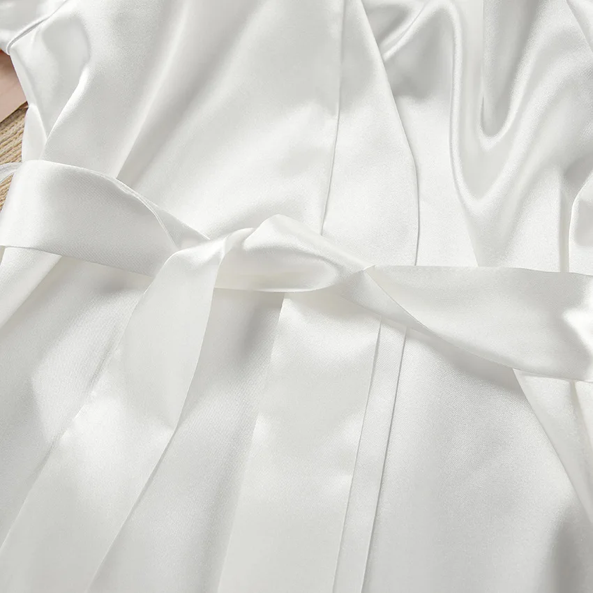 White Slip Dress +belted Cardigan Jacket Two Piece Set Sexy Feather Satin Pajamas Spring Summer Sleepwear Women Clothing 2025