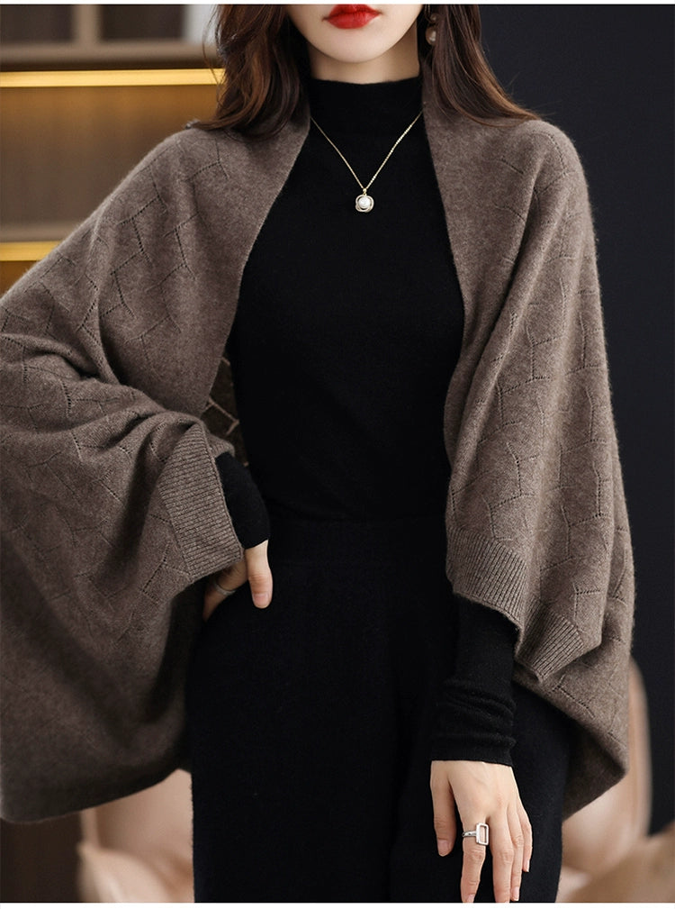 Wrap Shawl Open Cardigan Cape Sweater for Women Loose Open-front Knitted Jacket Soft Poncho Fine Knitwear Ladies Elegant Outfit