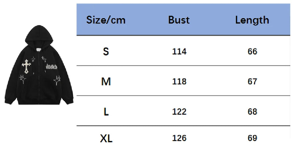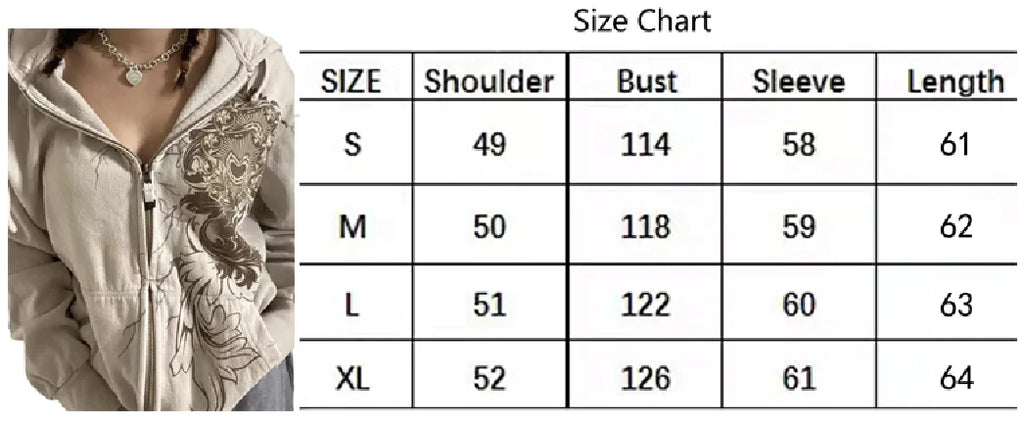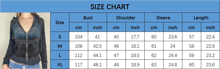 Y2K Aesthetic Vintage Slim Sweatshirts Embroidery Graphic Pattern Zip Up Hoodies 2000s Retro Grunge Mall Goth Jacket Autumn Coat