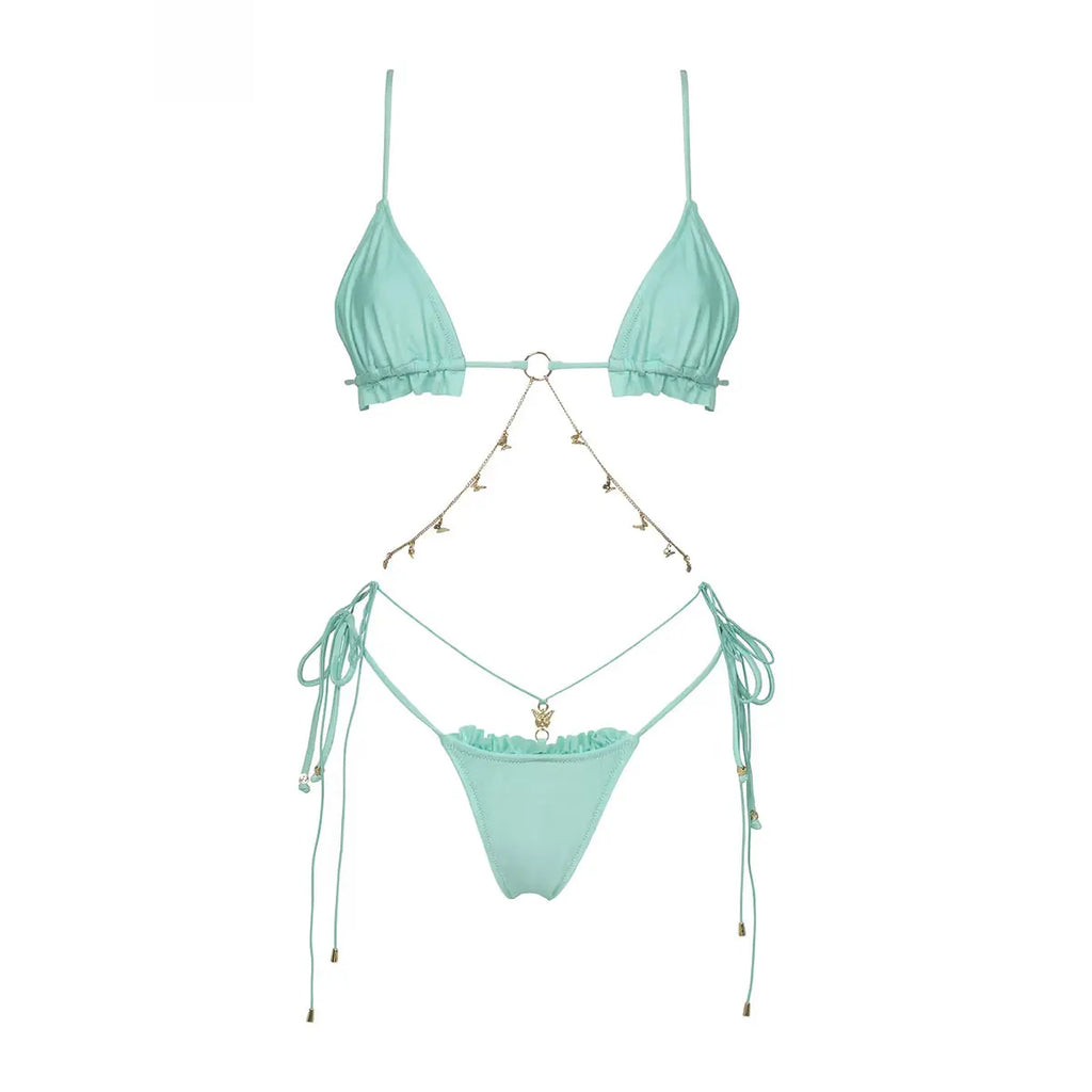 2025 One Piece Swimsuit With Chain Sexy Women Bikini Cut Out Swimwear Female Bandeau Biquini Push Up Bathing Suits Beachwear