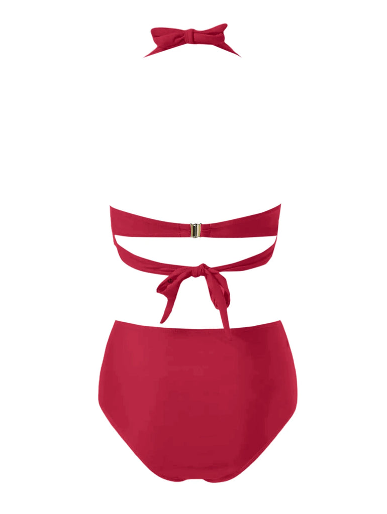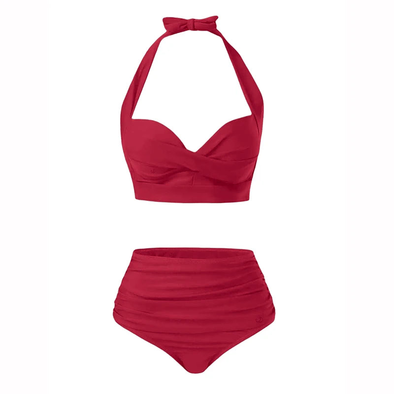 2025 Women's Bikinis Set Solid Color Knot Twist Bikini Swimsuit High Waist Adjustable Strap Two Piece Bathing Swimwear