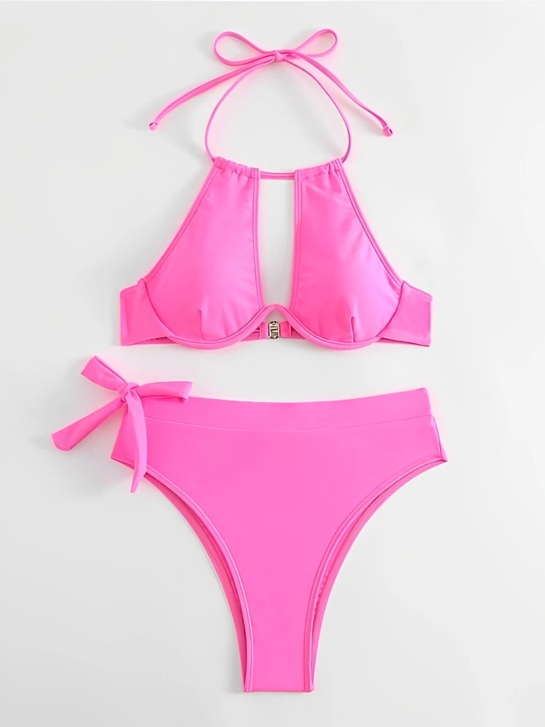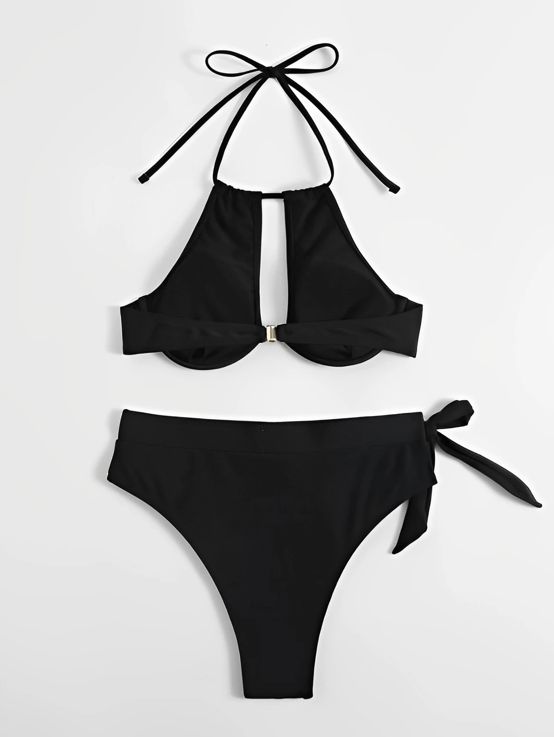 Cut-out Push Up Bikini Solid Halter Swimsuit Women High Waist Swimwear Female Bathers Bathing Swimming Swim Suit Beachwear