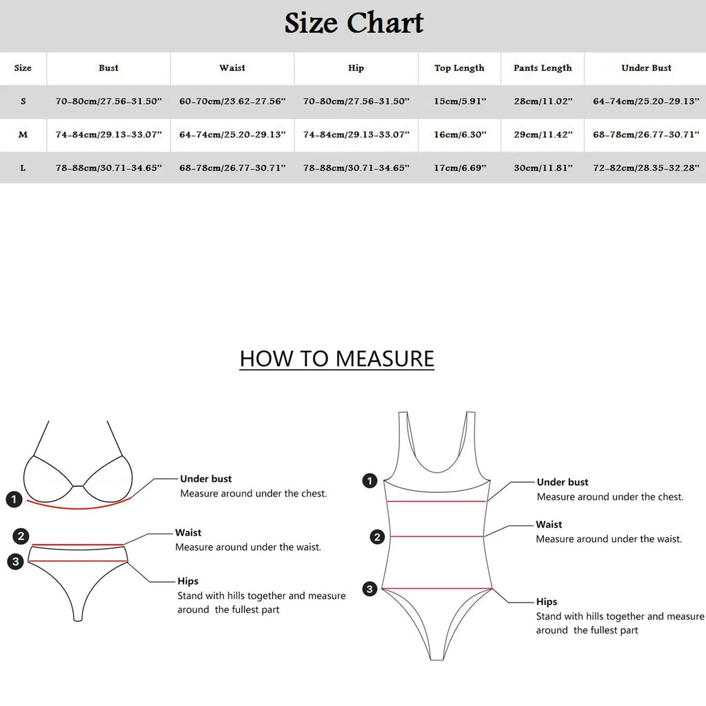 Size:M | Bust:74-84cm/29.13-33.07'' | Waist:64-74cm/25.20-29.13'' | Hip:74-84cm/29.13-33.07'' | Top Length:16cm/6.30'' | Pants Length:29cm/11.42'' | Under Bust:68-78cm/26.77-30.71'' |