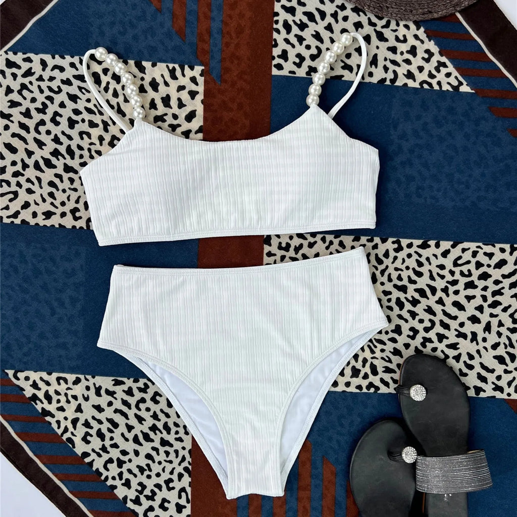 White Pearl Bikini New Swimsuit High Waisted Swimwear Women Bikini Set Push Up Bathing Suit For Female Biquinis Beachwear