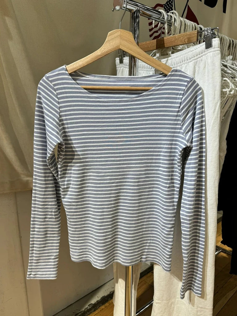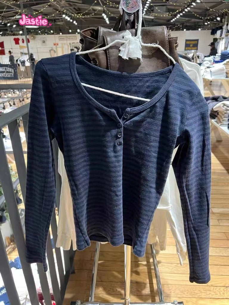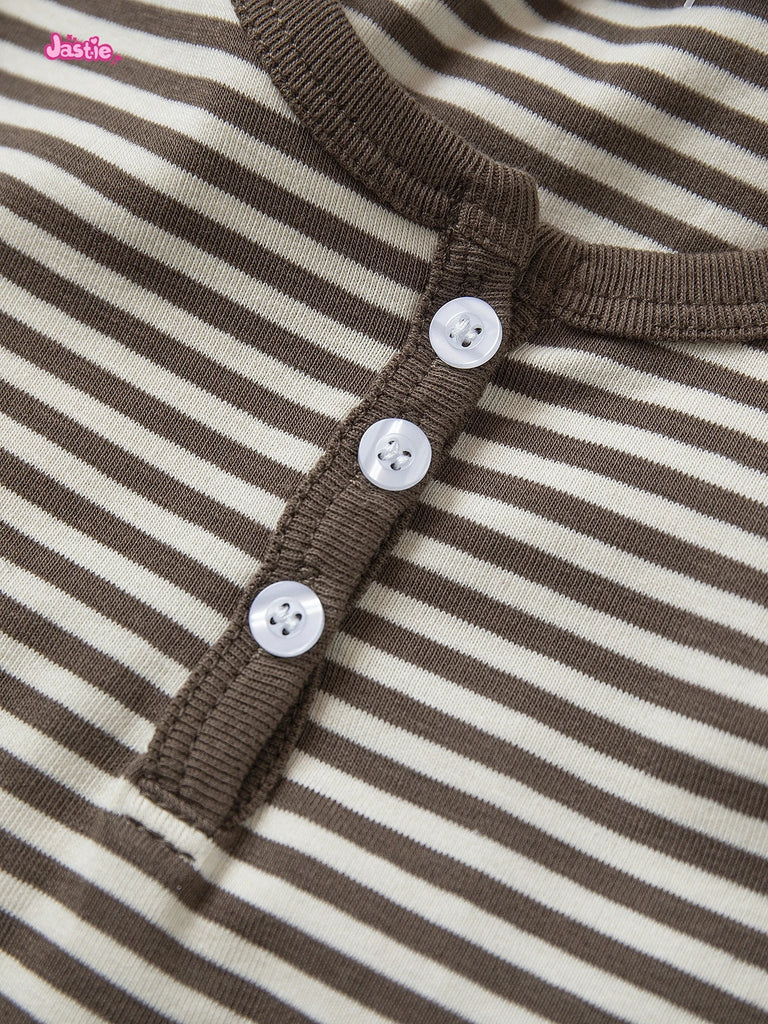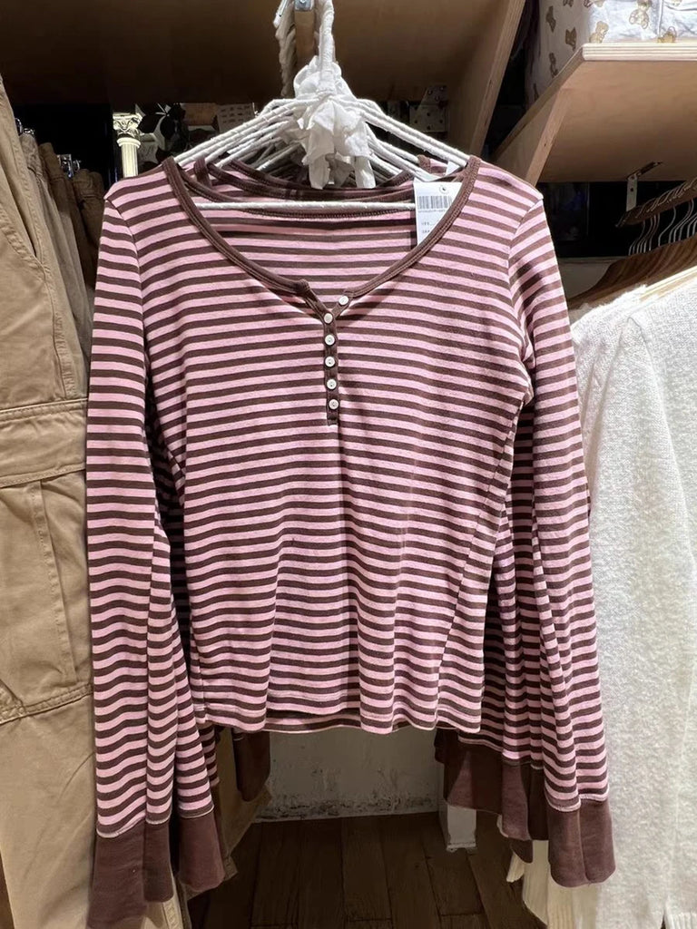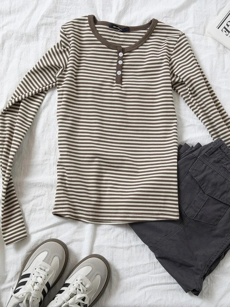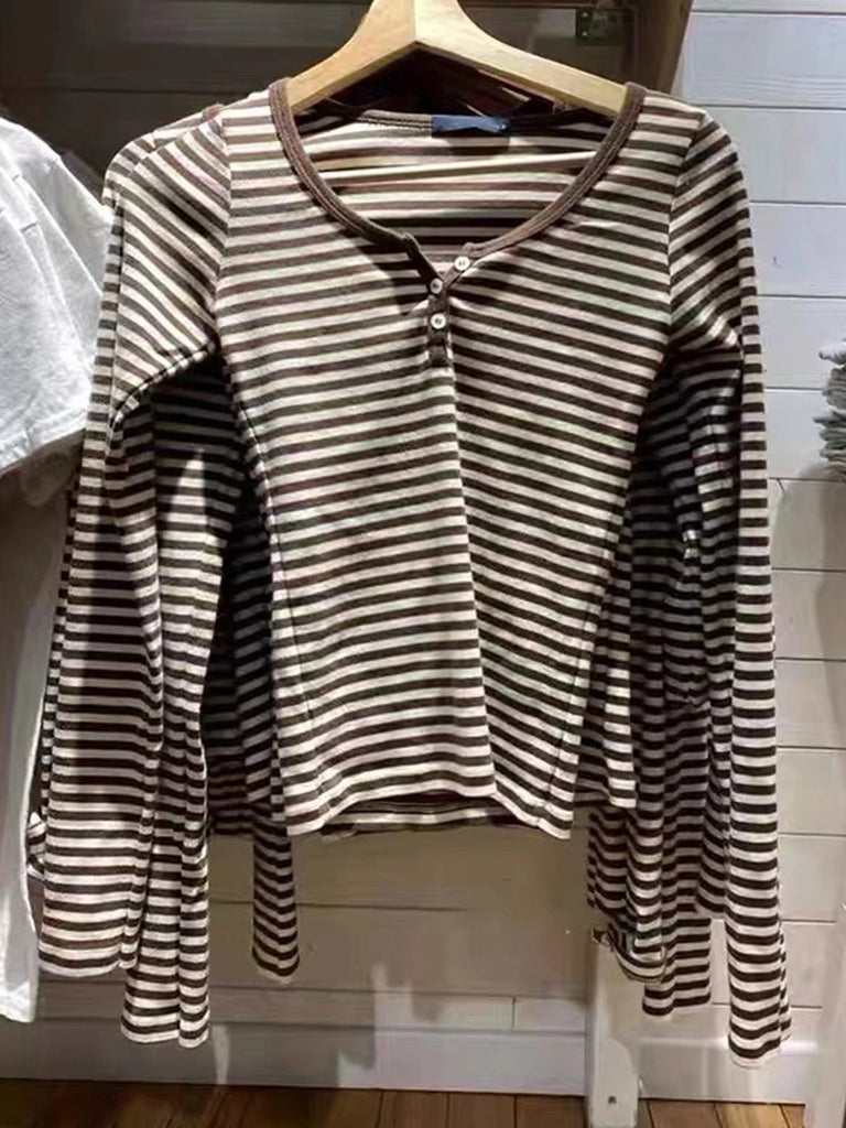 Vintage Brown Striped Slim T-shirts Women Summer Y2k Streetwear Round Neck Long Sleeve T Shirt Harajuku Casual Cotton Tops