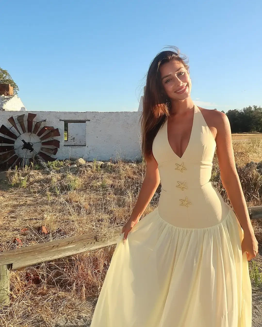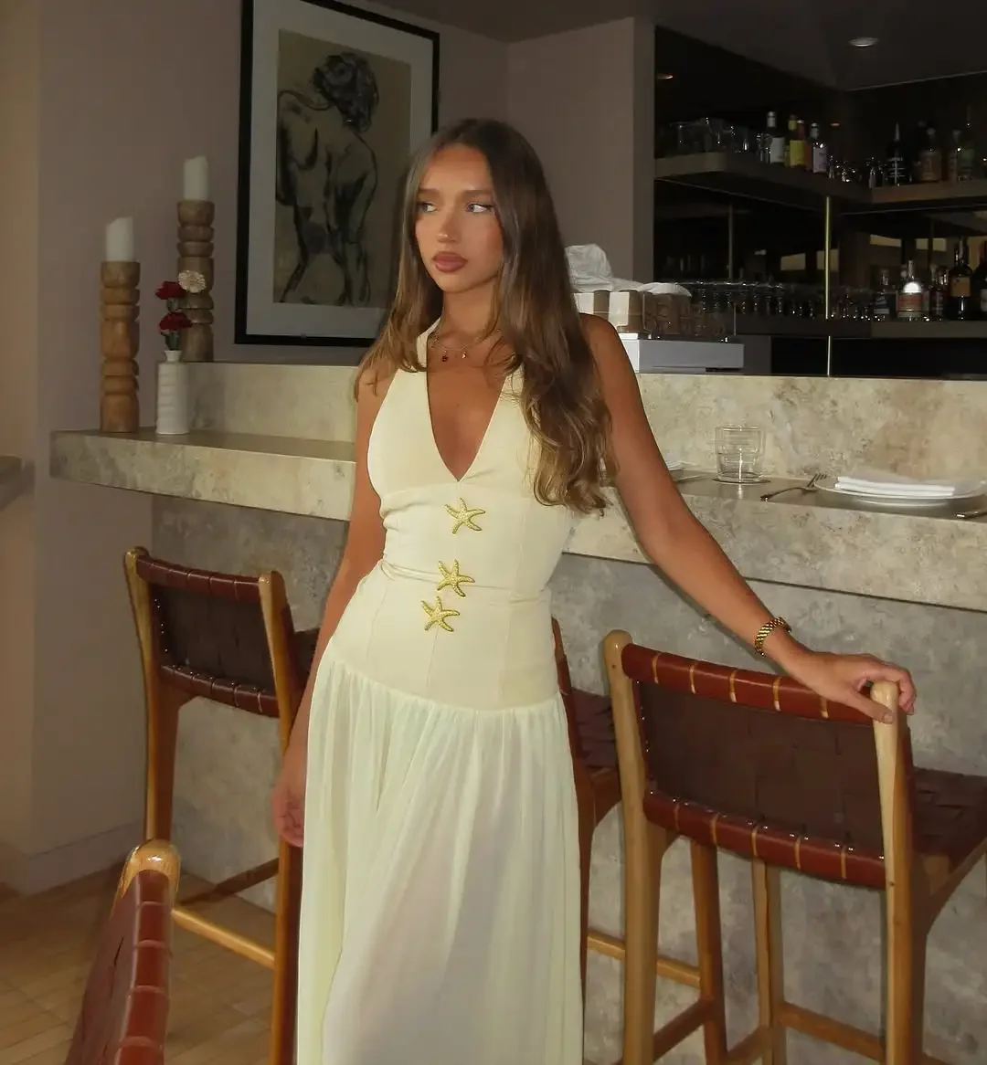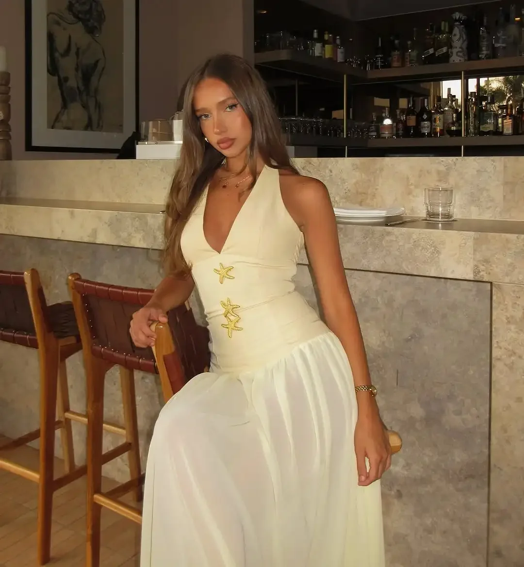 Model Number: Fashion Women's Star Decor V-neck Halter Long Dress