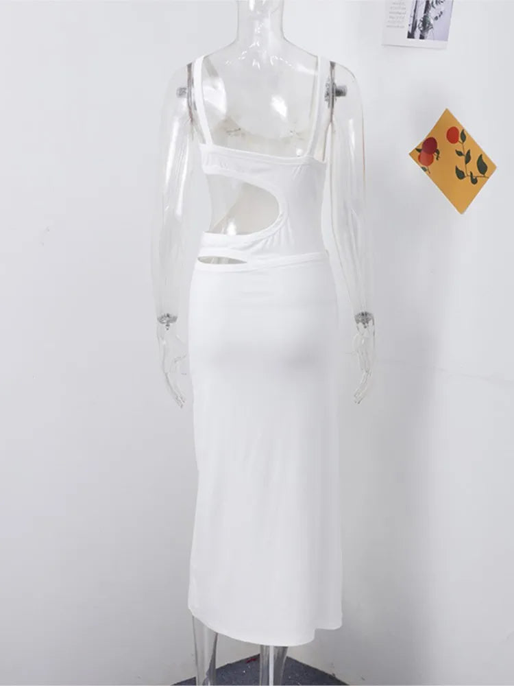 White Slim Beach Vacation Long Dress Summer Hollow Out Sleeveless Sexy Women Dress V-neck High Waist Casual Y2K 2025 New Dress