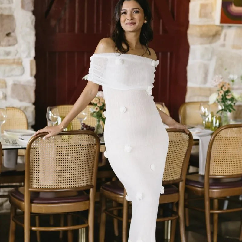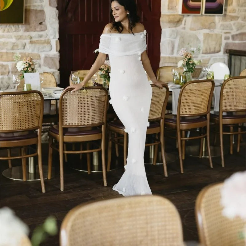 Women's New Vacation Style Strapless Long Dress 3D Flower Fashion Chic Beach Dresssolid Color Knitting Party Summer Dress