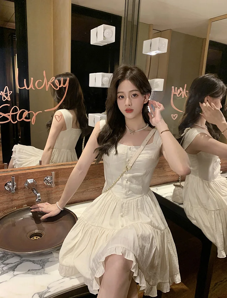 Fairycore Y2k Aesthetic White Dress Women Korean Vintage Slip Princess Dresses Elegant Ruffle High Waist Tunic Vestidos