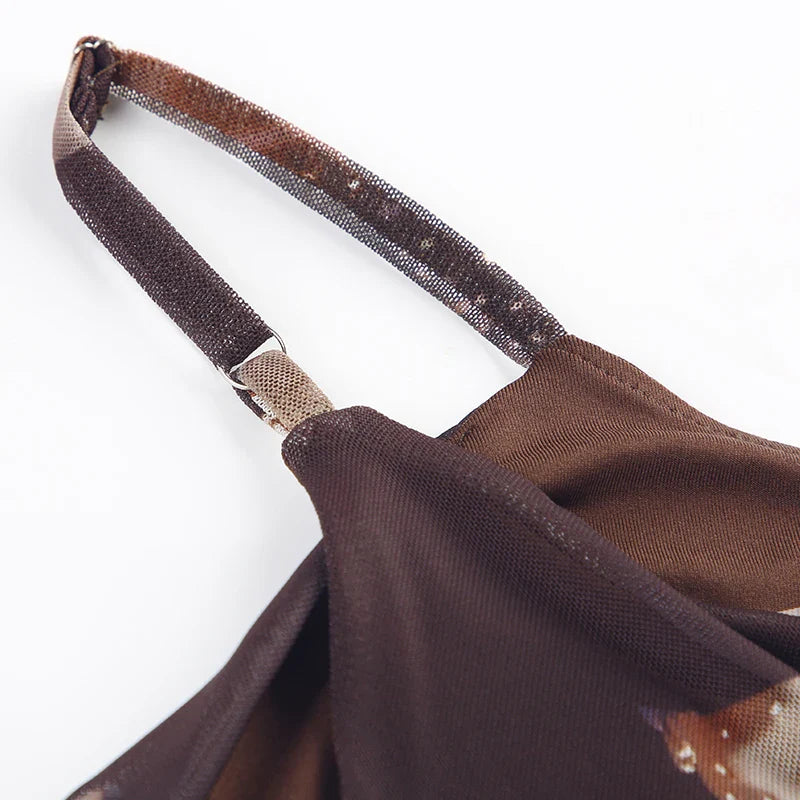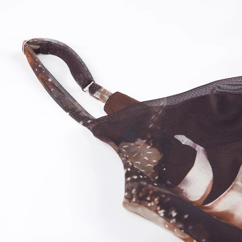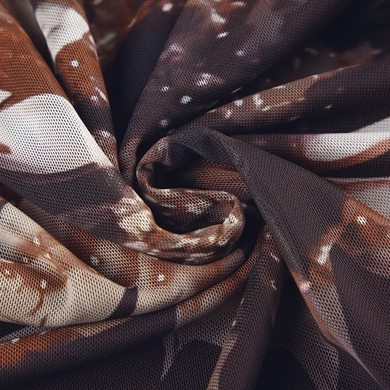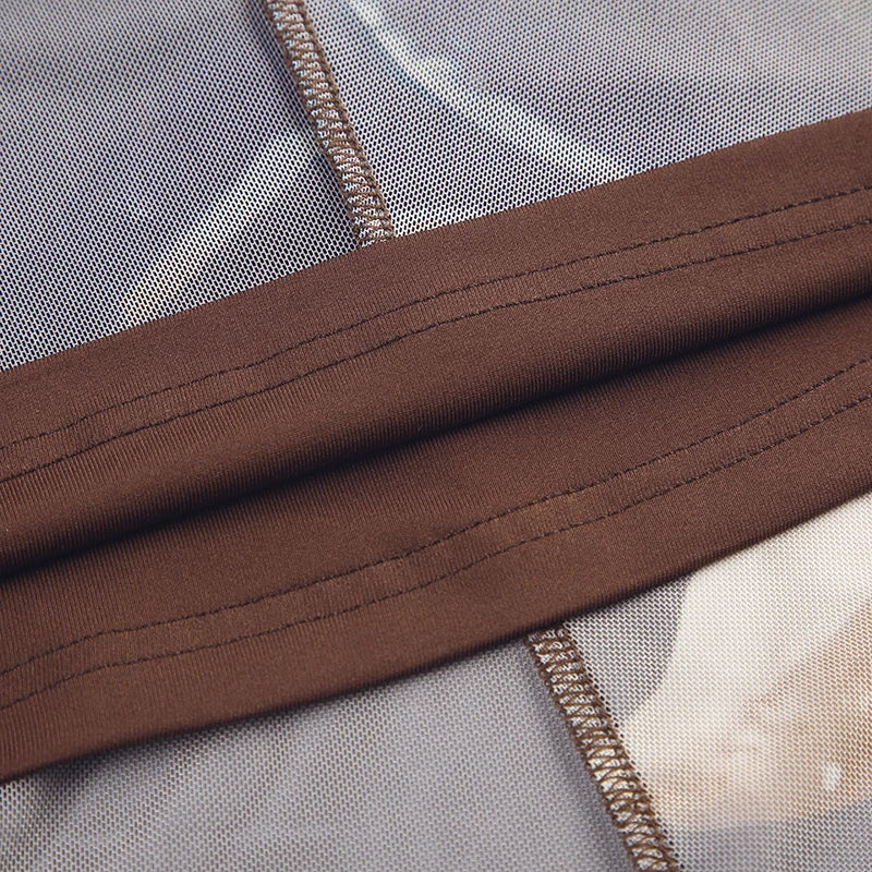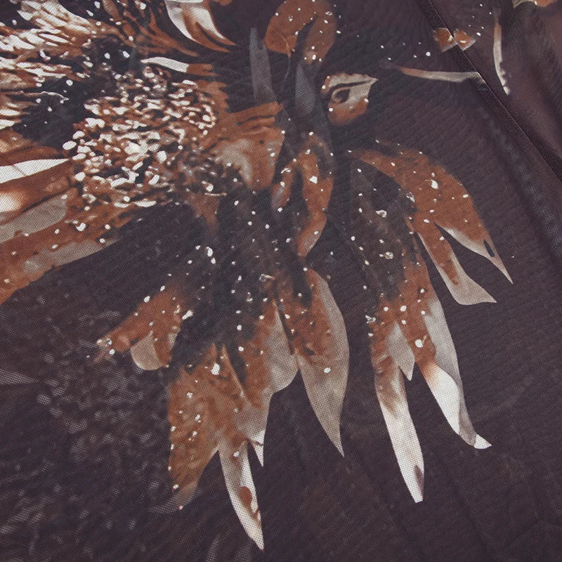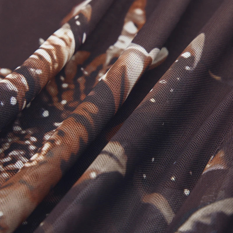 Vintage Asymmetrical Flowers Printing Mesh Dress