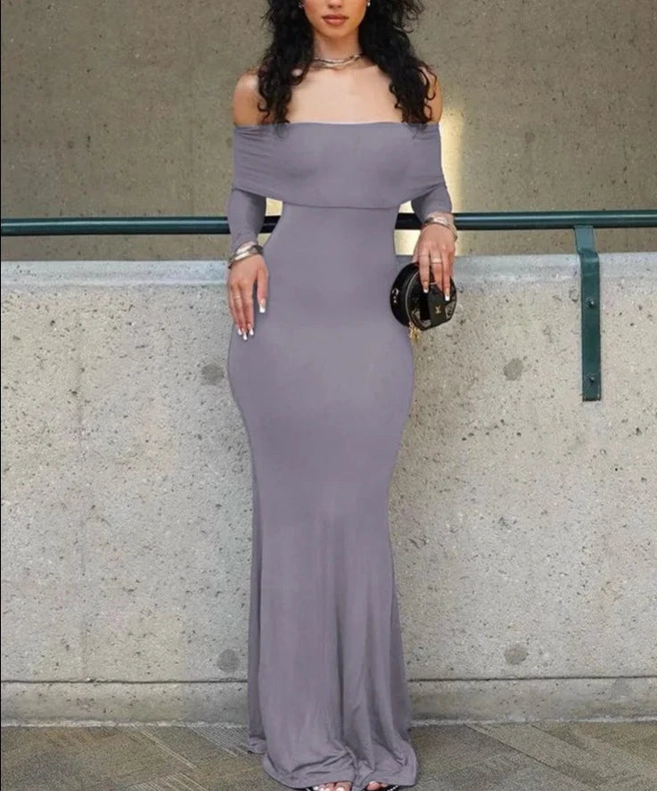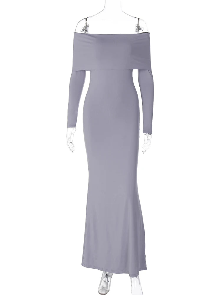 Neck Long Sleeve Solid Elegant Sexy Slim Bodycon Maxi Prom Dress 2023 Summer Women Y2K Wedding Party Goth Clothes