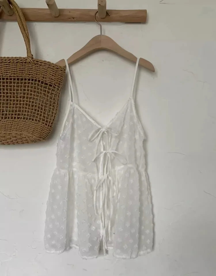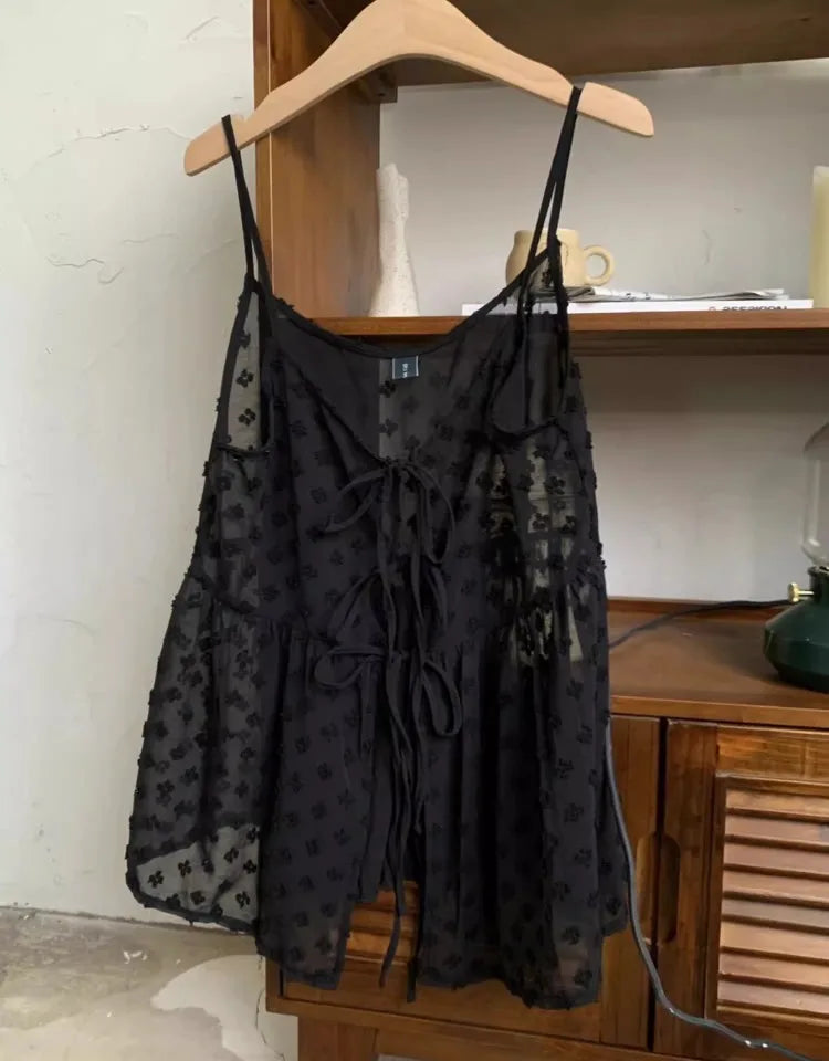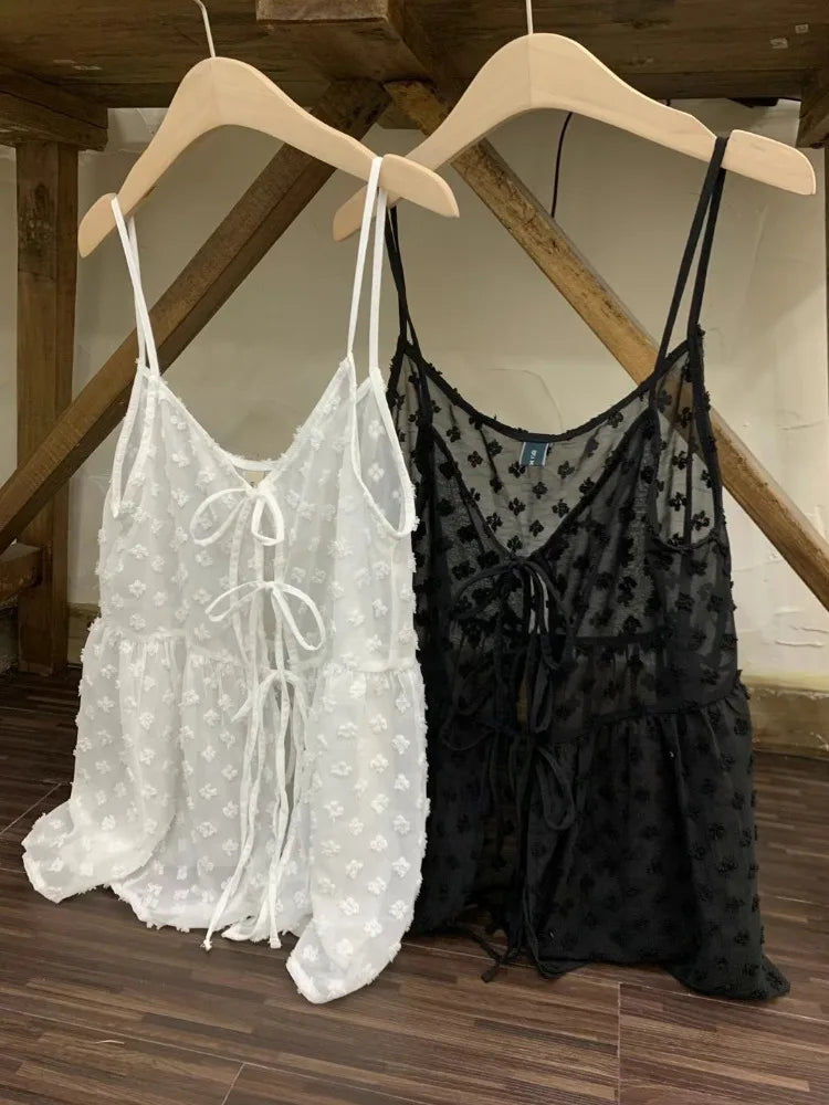 Summer New Mesh Lace Up Camisole Mujer Sexy Loose Straight Vest for Women Y2k Fairycore Sleeveless Tank Top
