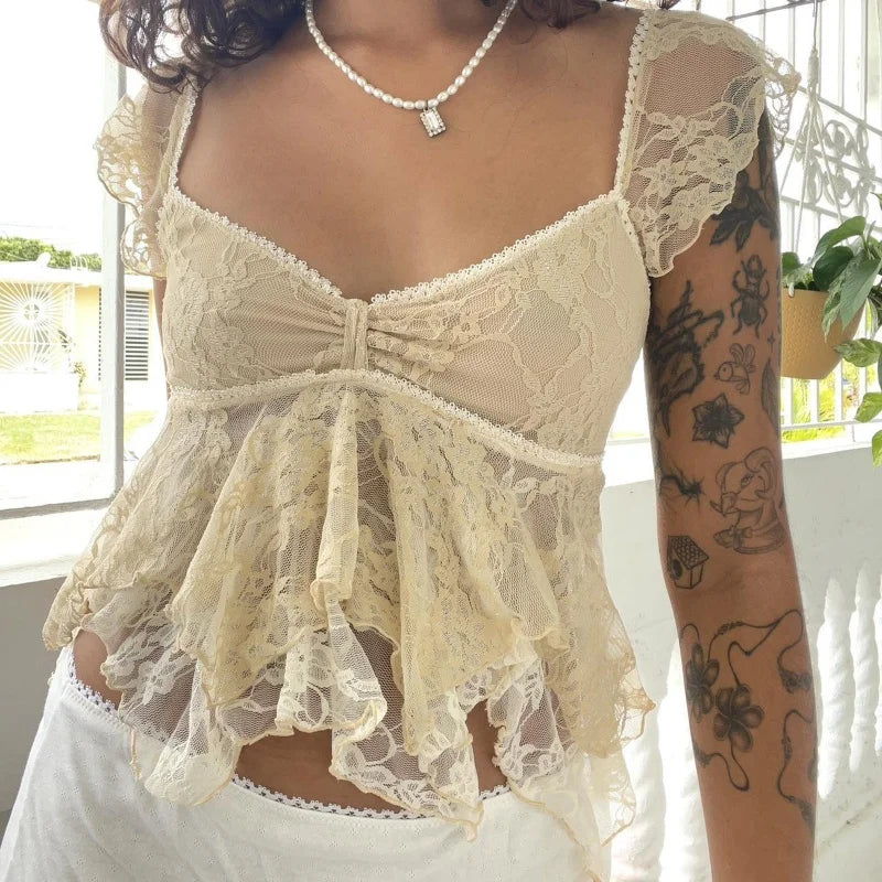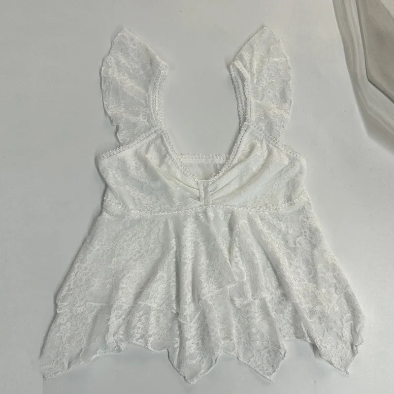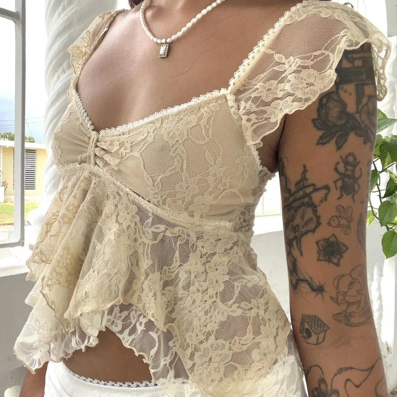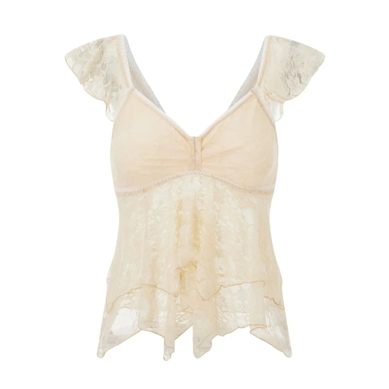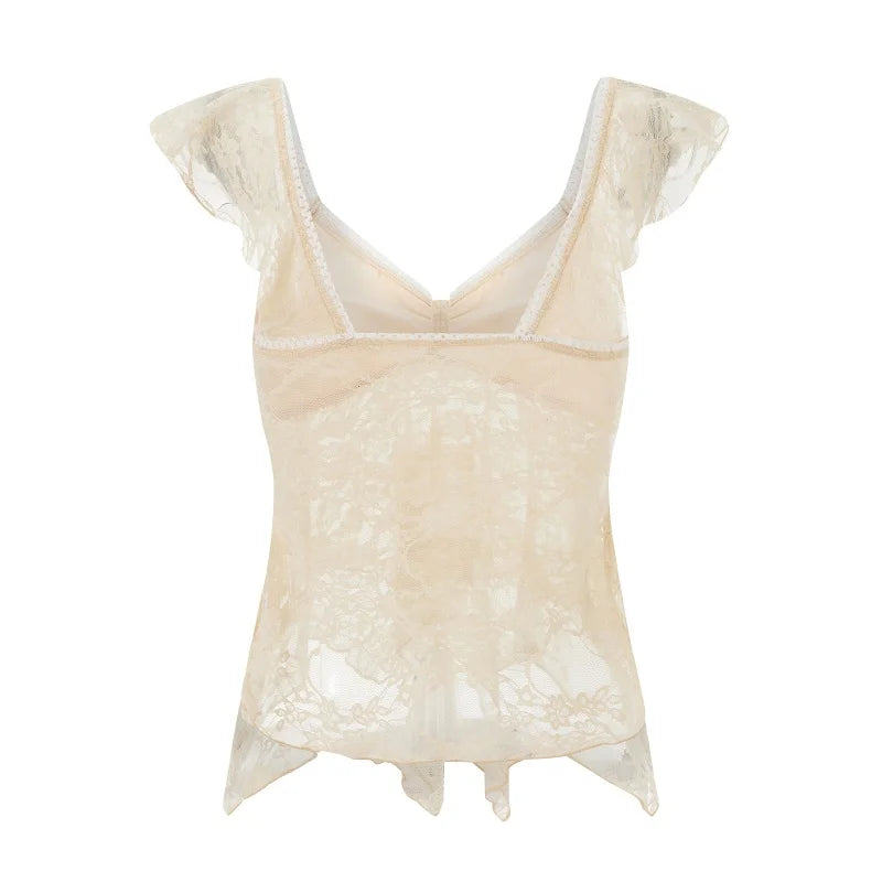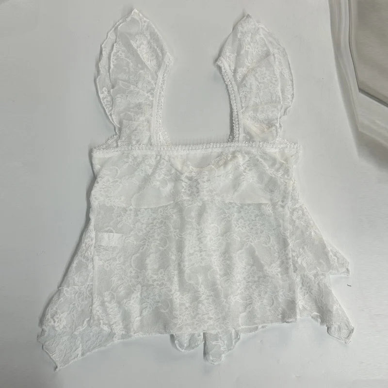 Fairy Coquette Tank Top y2k Women Sheer See Through V Neck Sleeveless Double Layered T Shirt Lace Vest Club Streetwear
