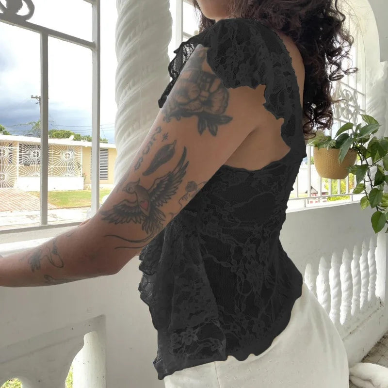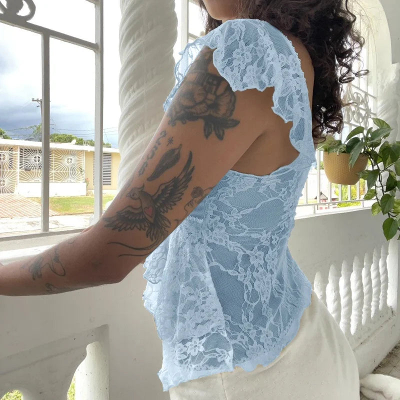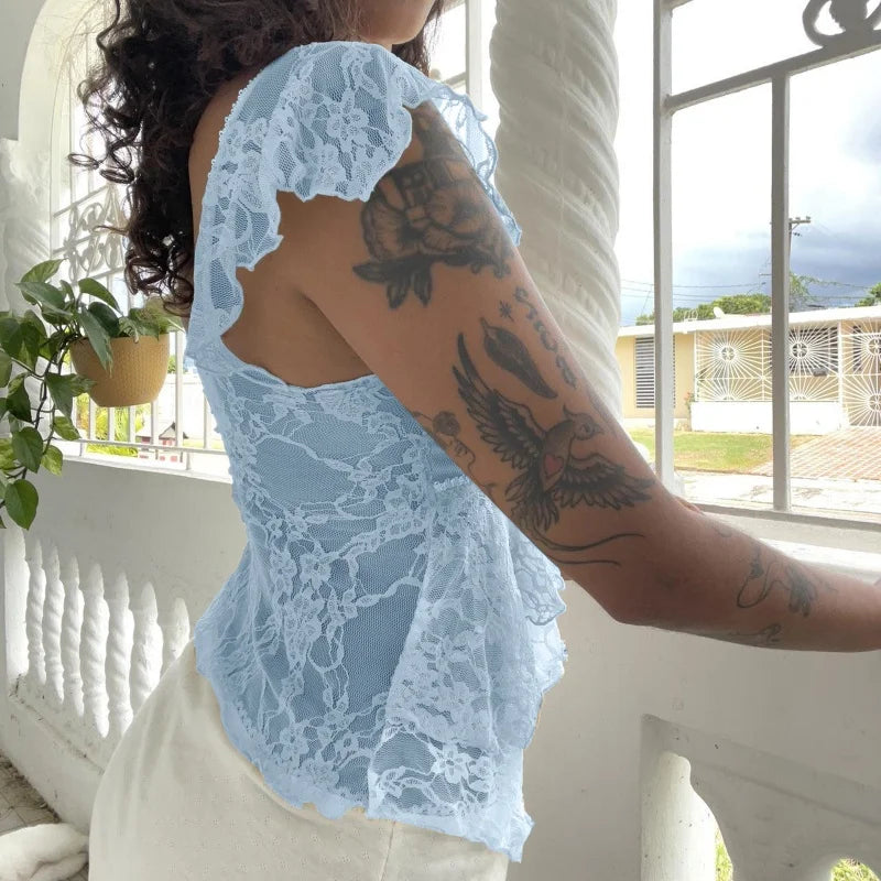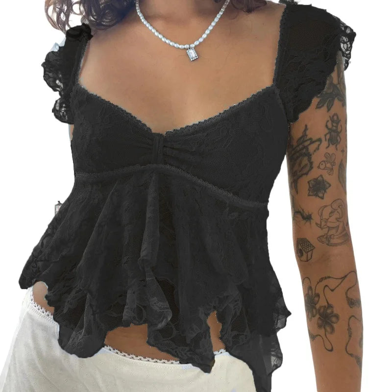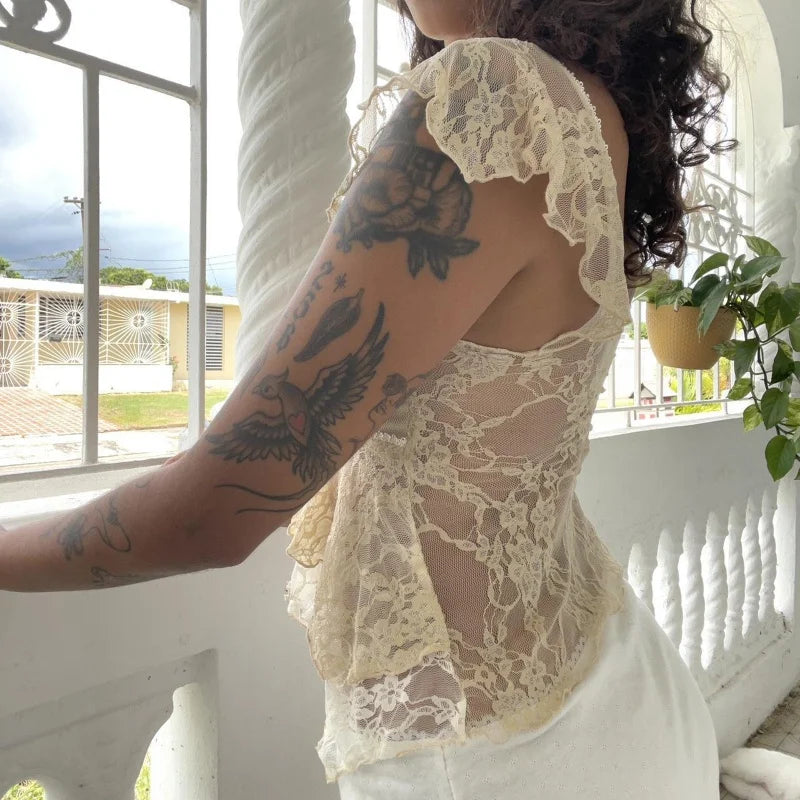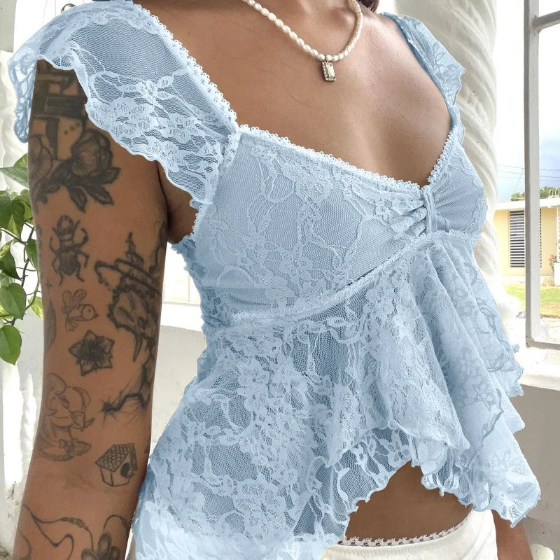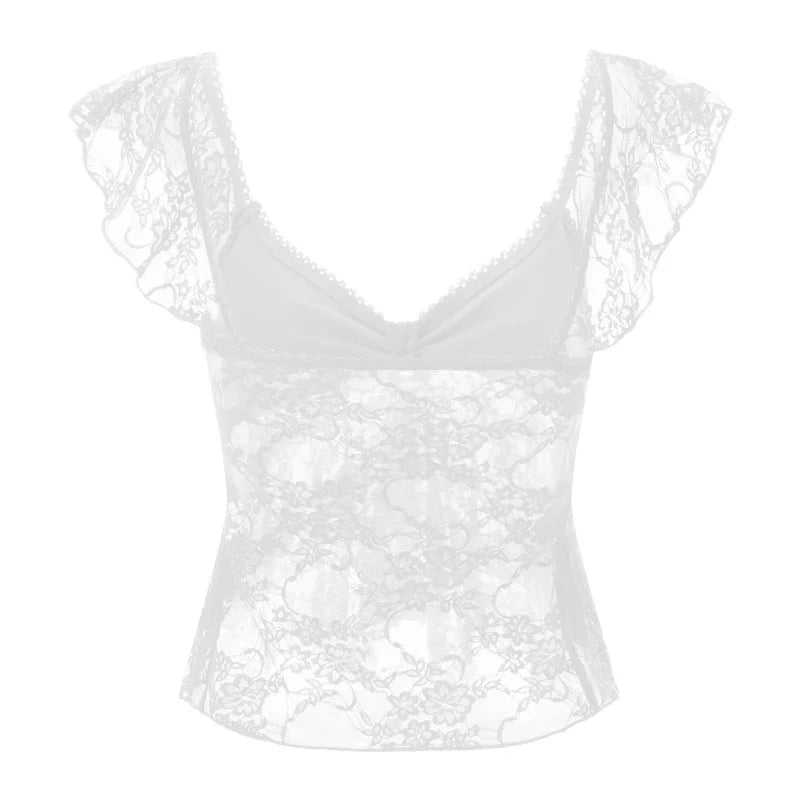 Fairy Coquette Tank Top y2k Women Sheer See Through V Neck Sleeveless Double Layered T Shirt Lace Vest Club Streetwear