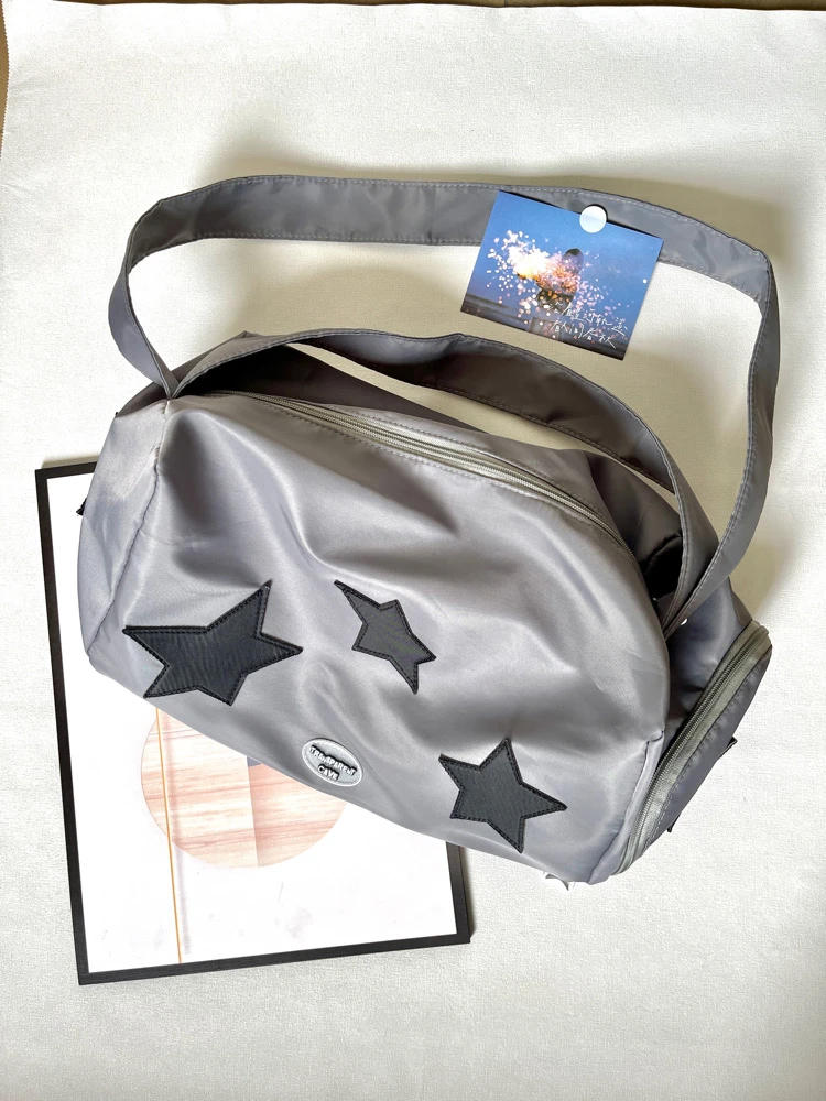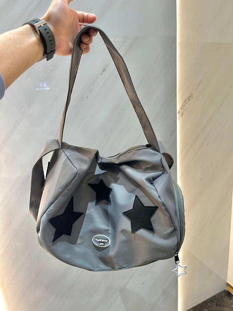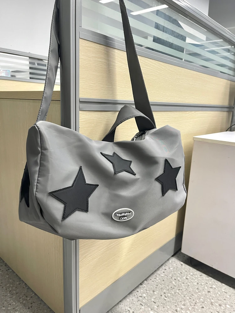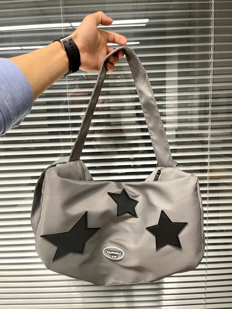 Y2K shoulder bag for women silver star shoulder crossbody nylon large capacity yoga fitness handbag hot girl retro shoulder bag