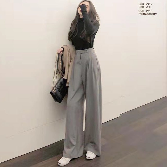 Retro Solid Color Wild Straight Wide Leg Pants Female Spring New Korean Fashion High Waist Casual Long Pants