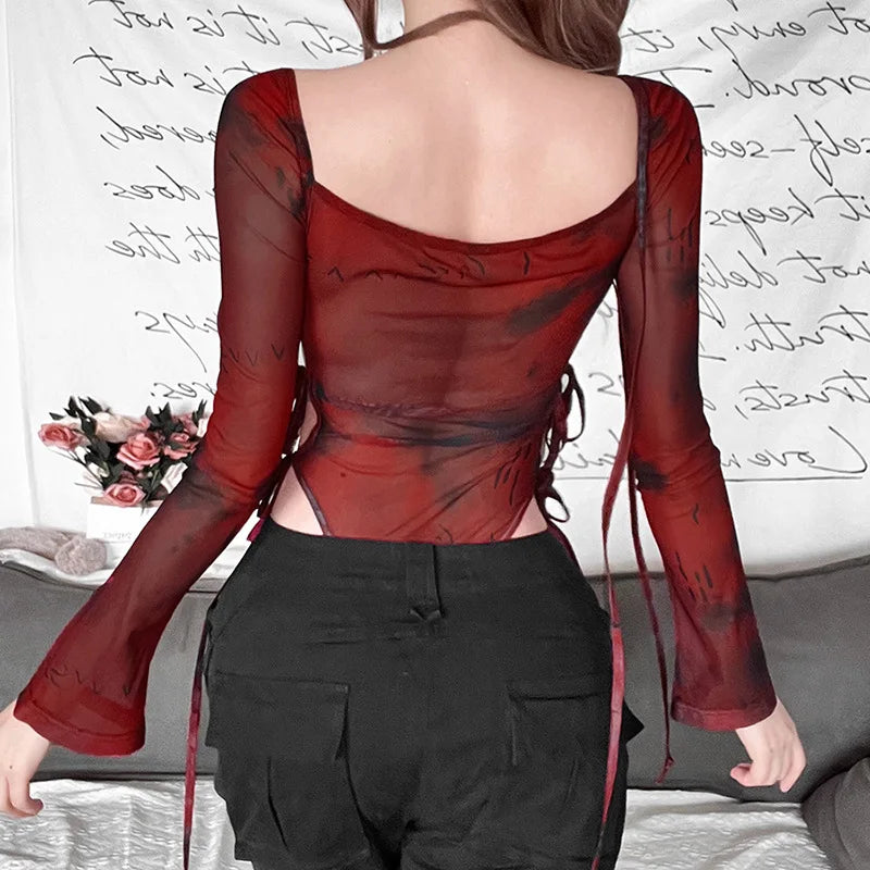 Spring New Red Spot Print Distinctive All-Match High Street Tight Sexy Hot Cool Women'S Thin Long-Sleeved Jumpsuit