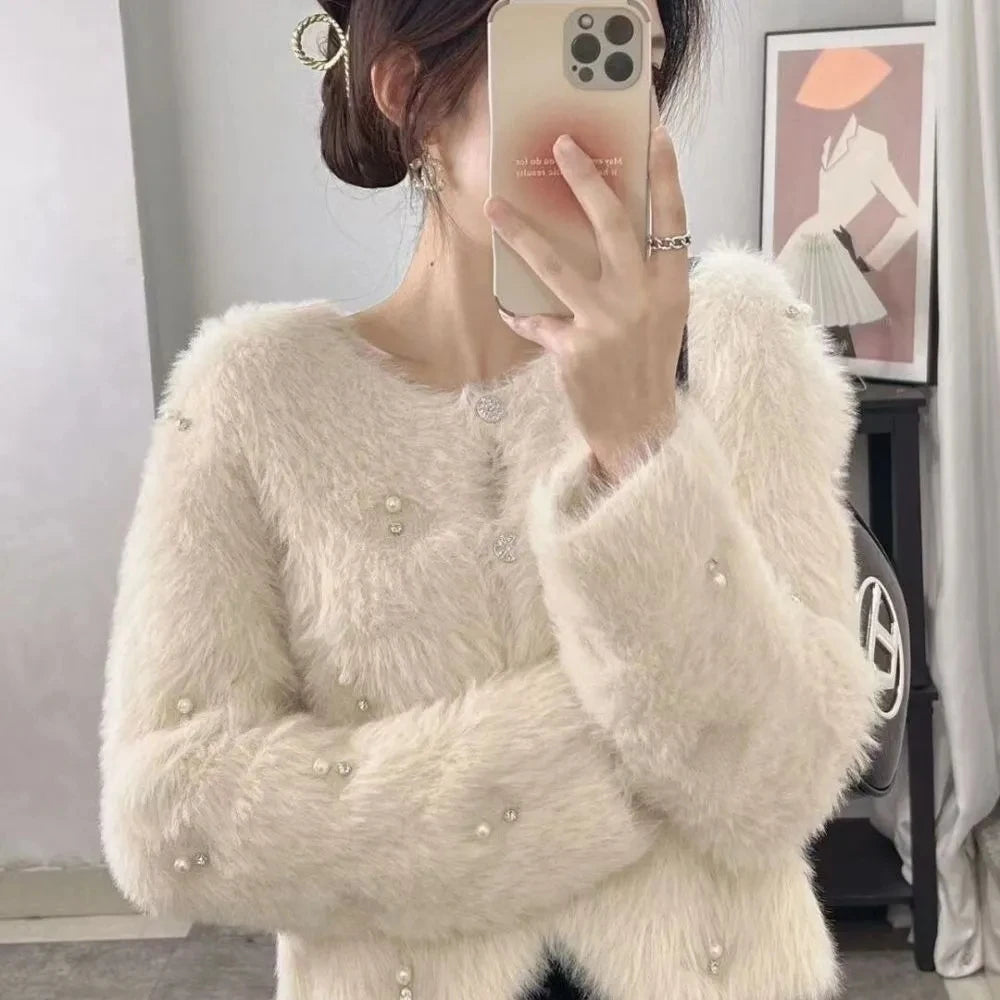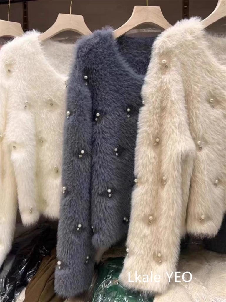2025 Autumn And Winter heavy industry Women Knitted Cardigan Sweater Coat Imitation mink fur comfortable Female Sweater Jacket