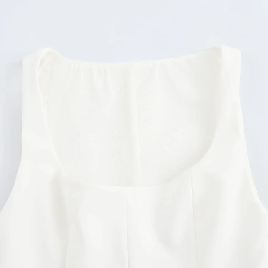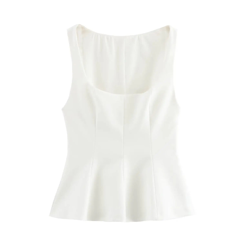 2025 Summer New Women Square Neck Crop T-shirt Casual Chic Sleeveless Slim White Black Crop Tank Tops Female Clothes