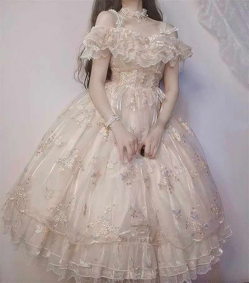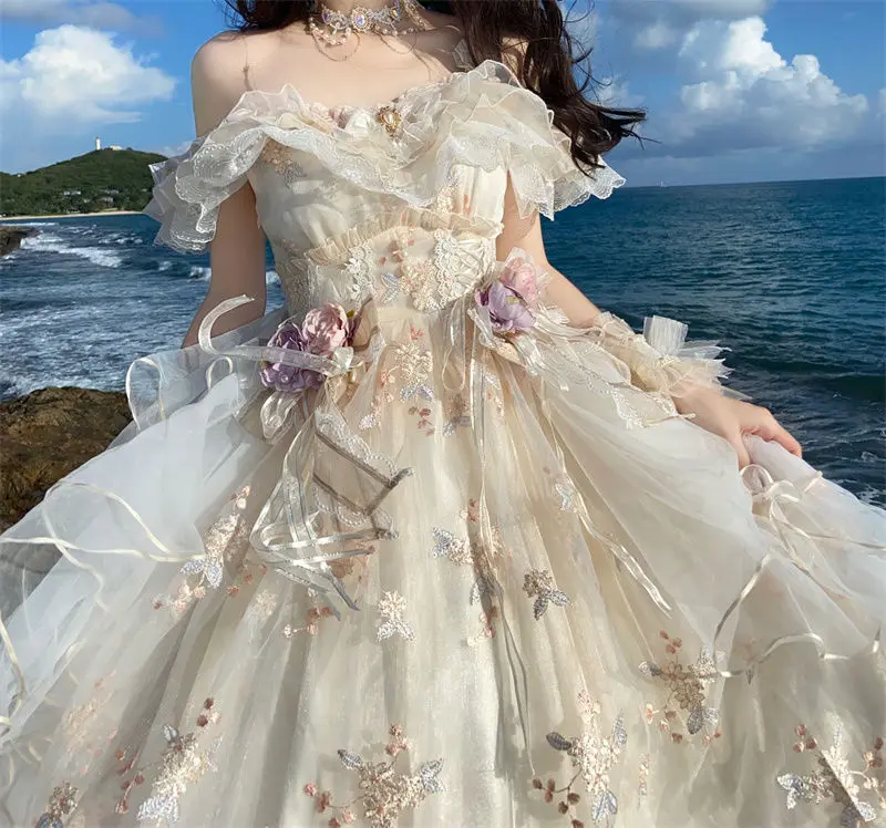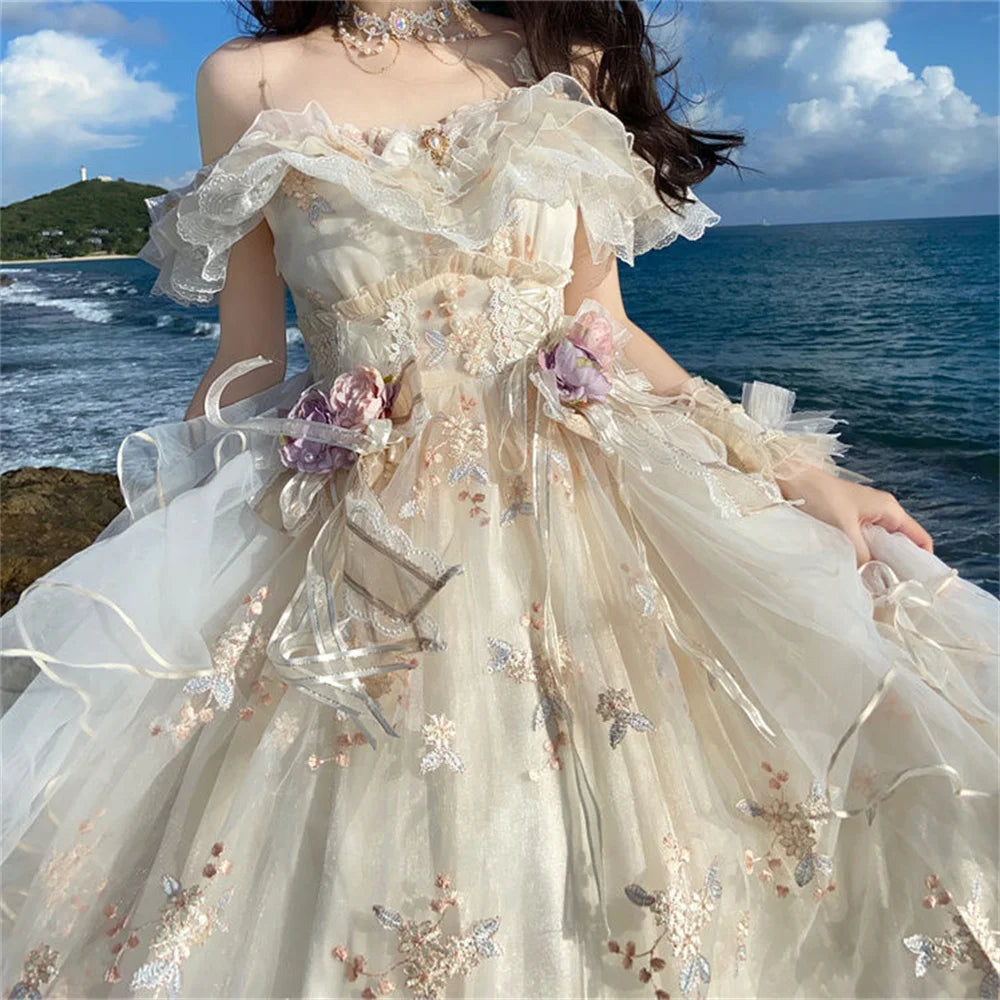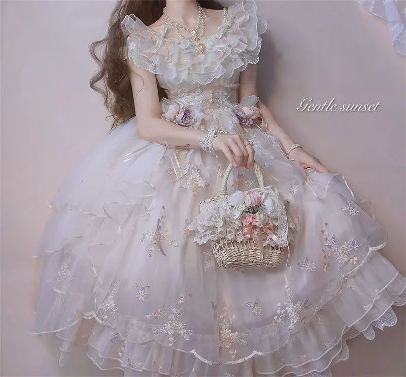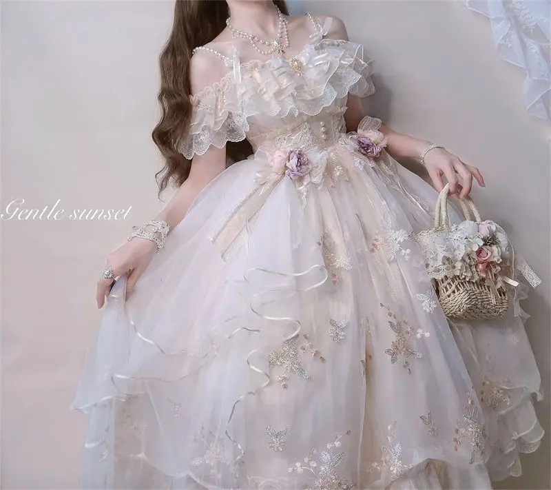 Retro Lolita Jsk Dress Japanese Women Sweet Lace Floral Embroidery Princess Wedding Dresses Girls Cute Party Vestidos