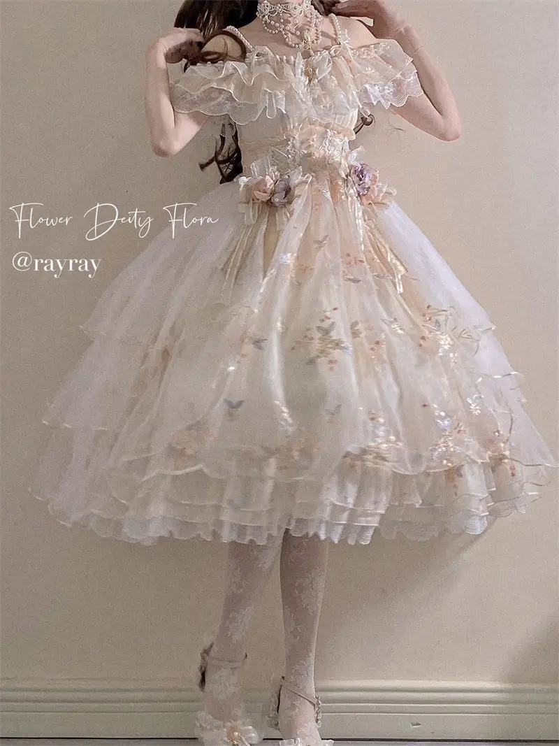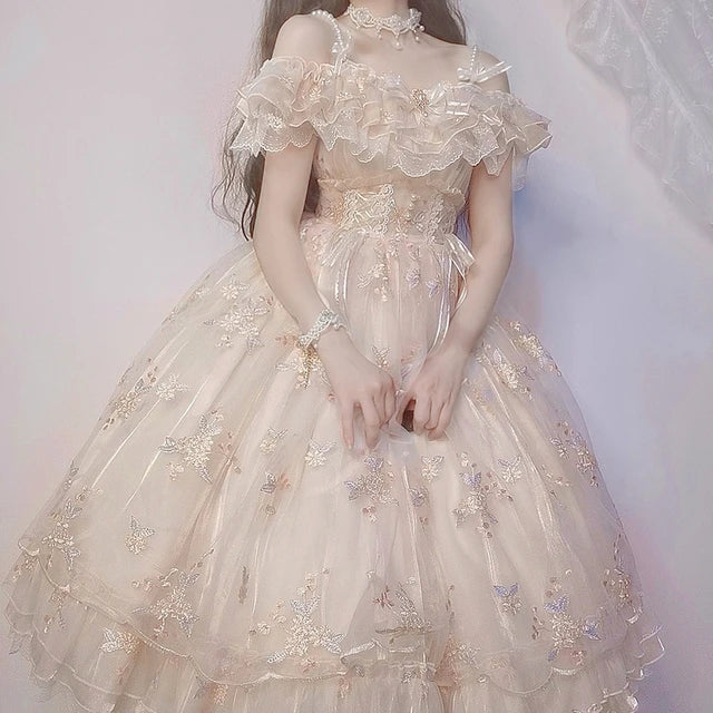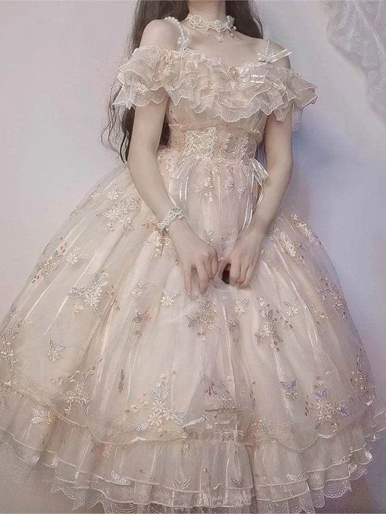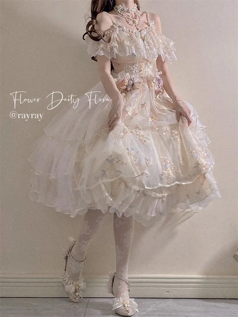 Retro Lolita Jsk Dress Japanese Women Sweet Lace Floral Embroidery Princess Wedding Dresses Girls Cute Party Vestidos