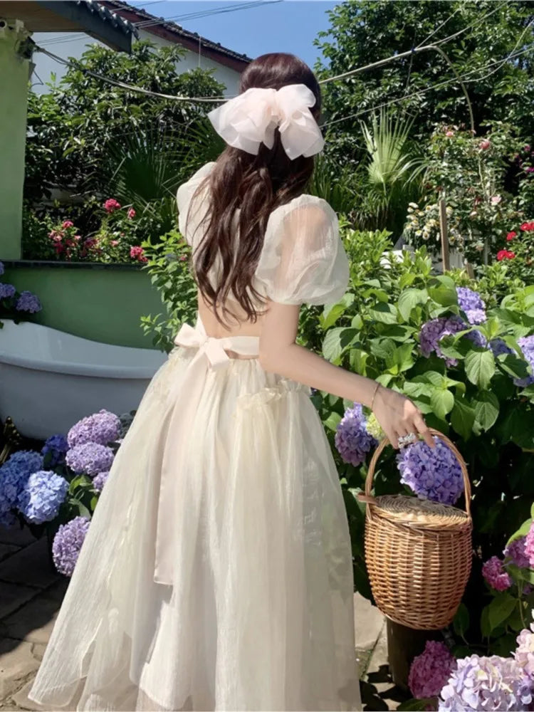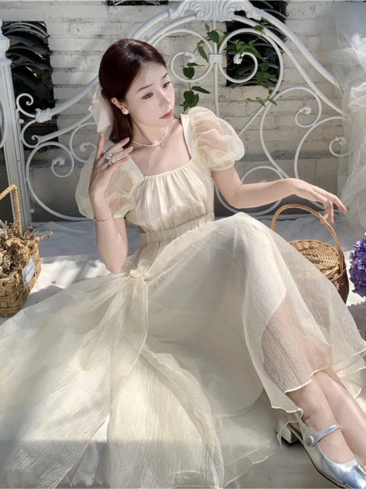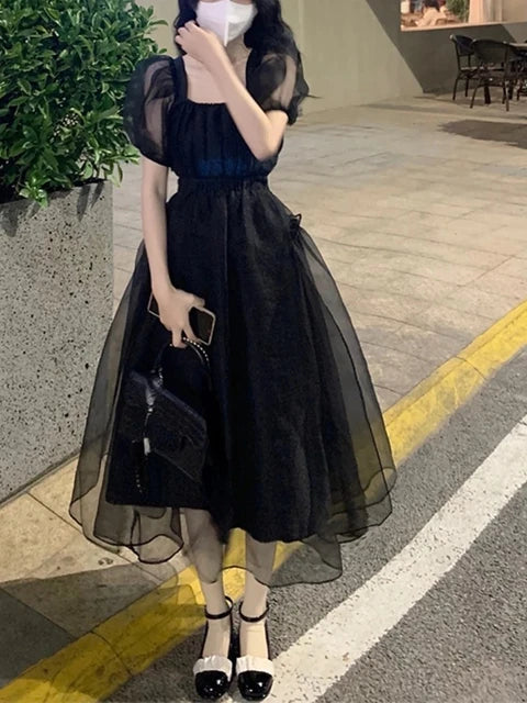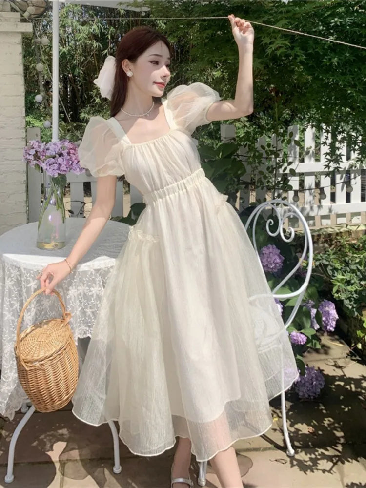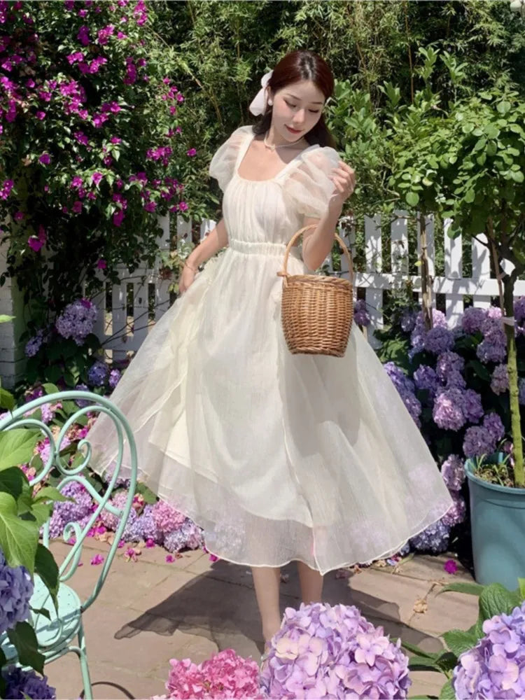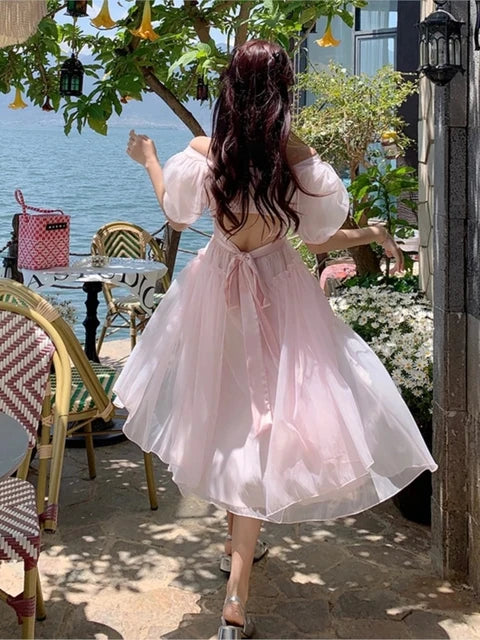 Summer Women French Style Elegant Party Midi Print Dress Female Fashion A Line Holiday Clothes Vestidos
