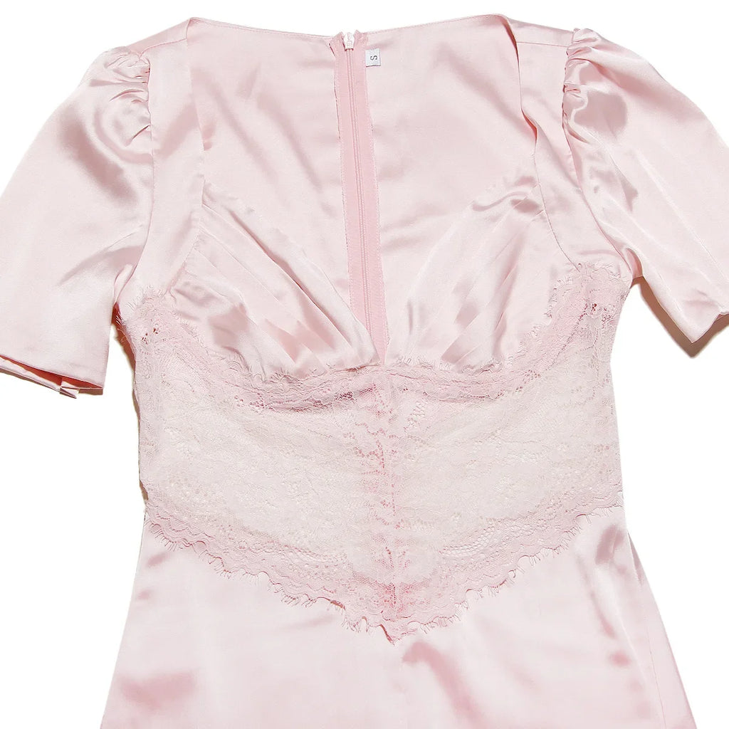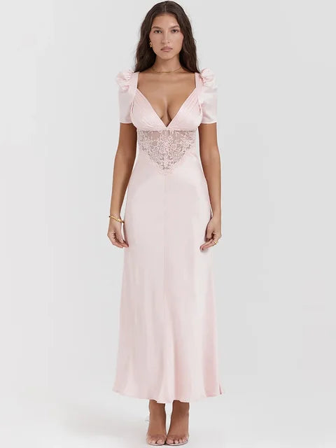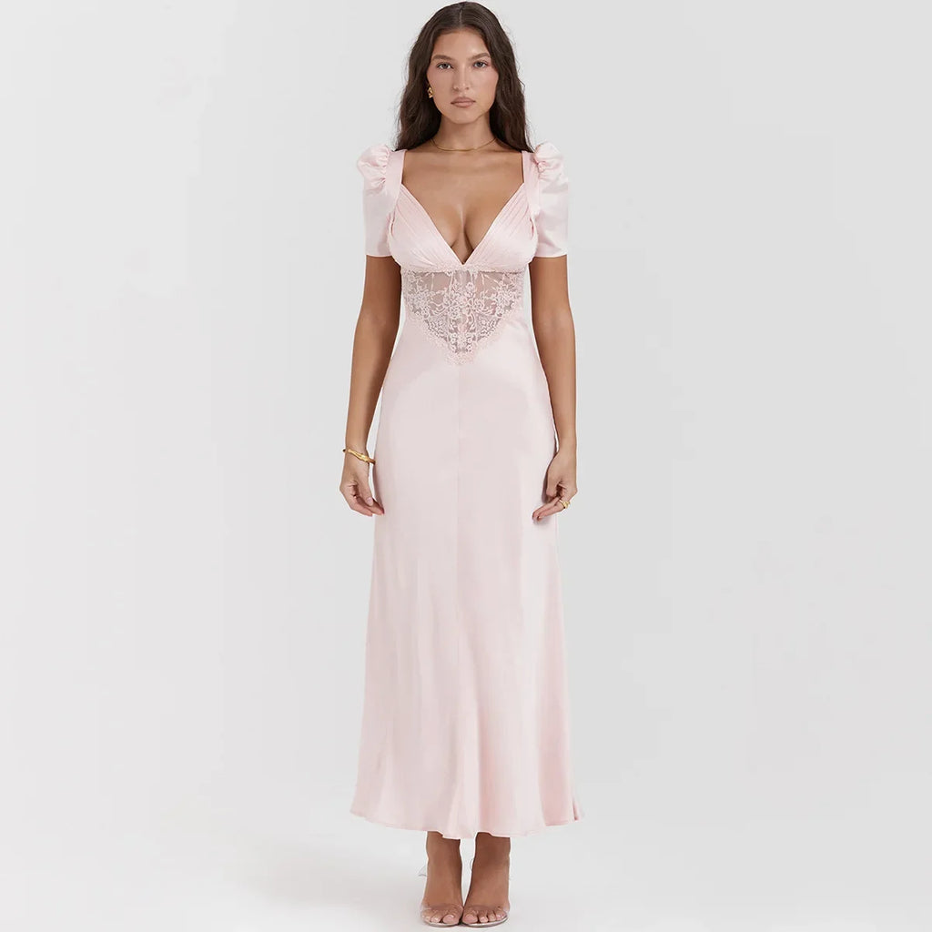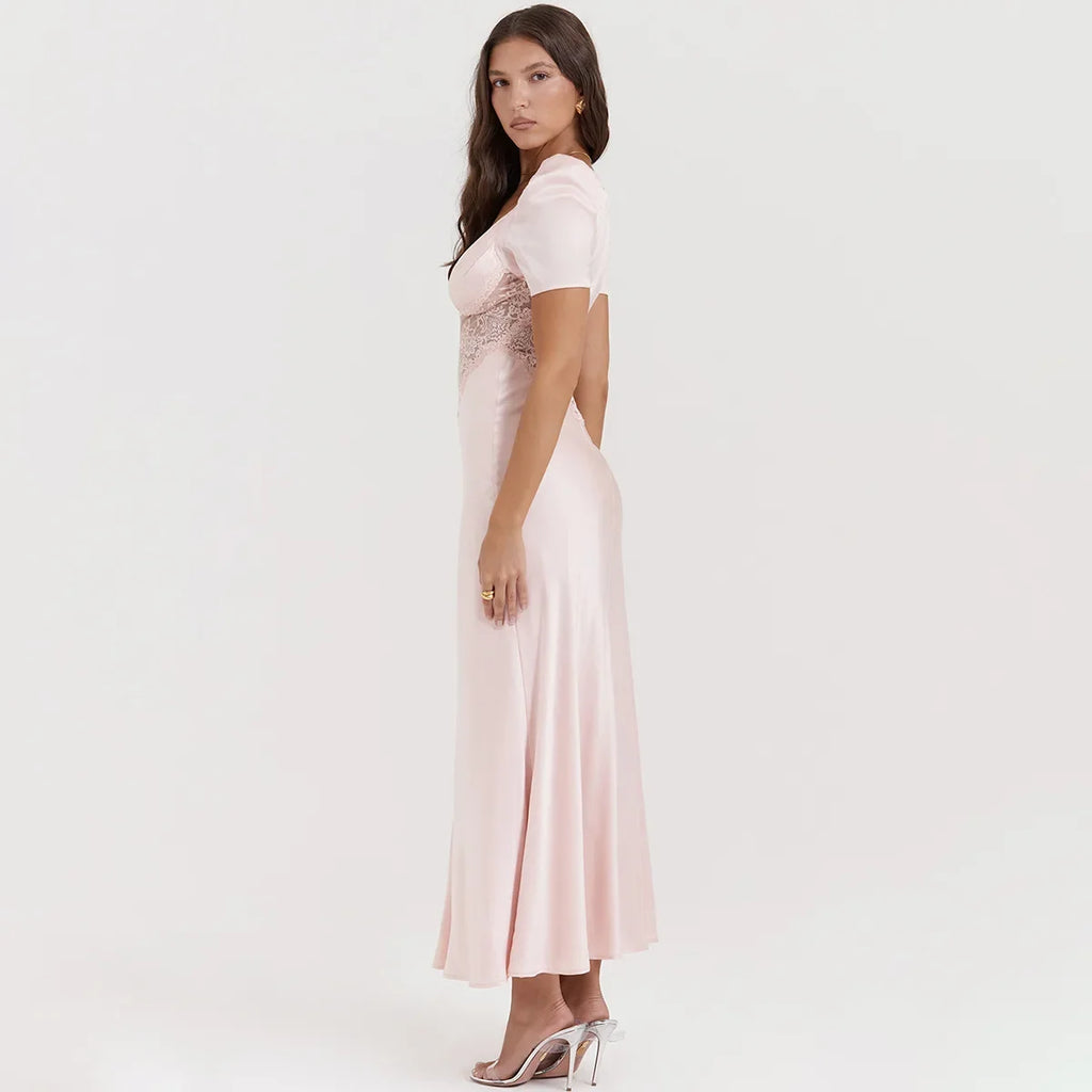 Wedding Guest Dresses Women Autumn Pink Elegant Short Sleeve Lace Party Dresses Long Maxi Formal Occasion Dress