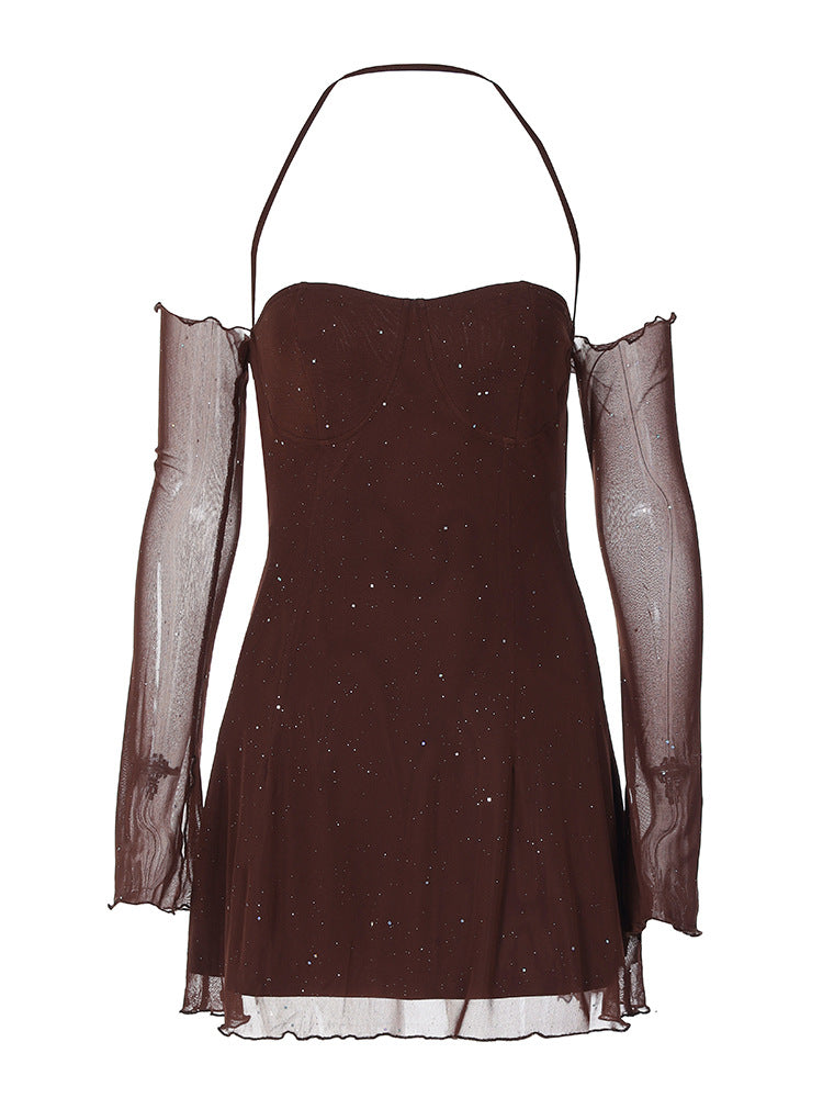 European and American women's clothing spring new sexy pure desire style mesh sleeves backless slimming and hip-wrapped dress