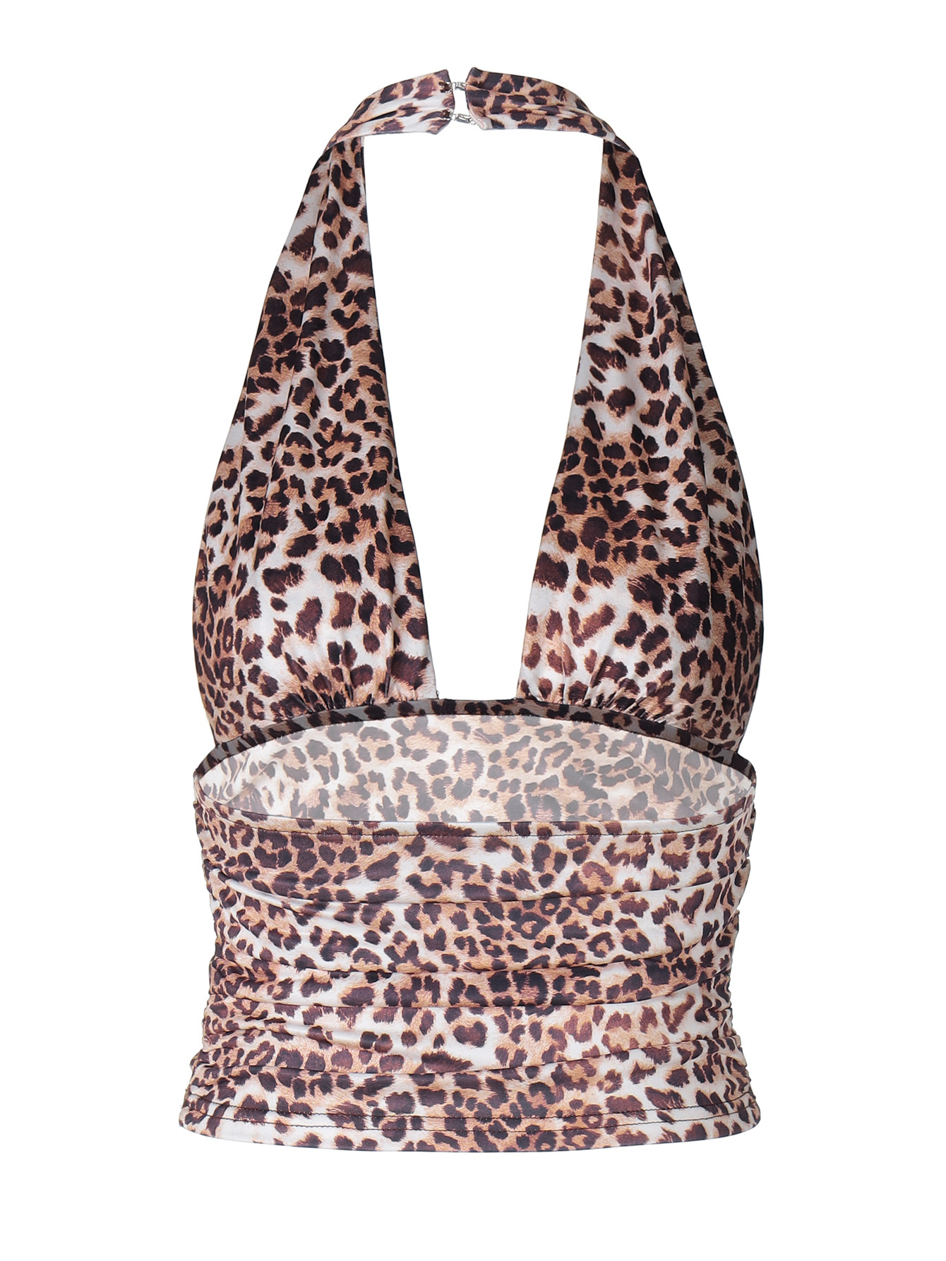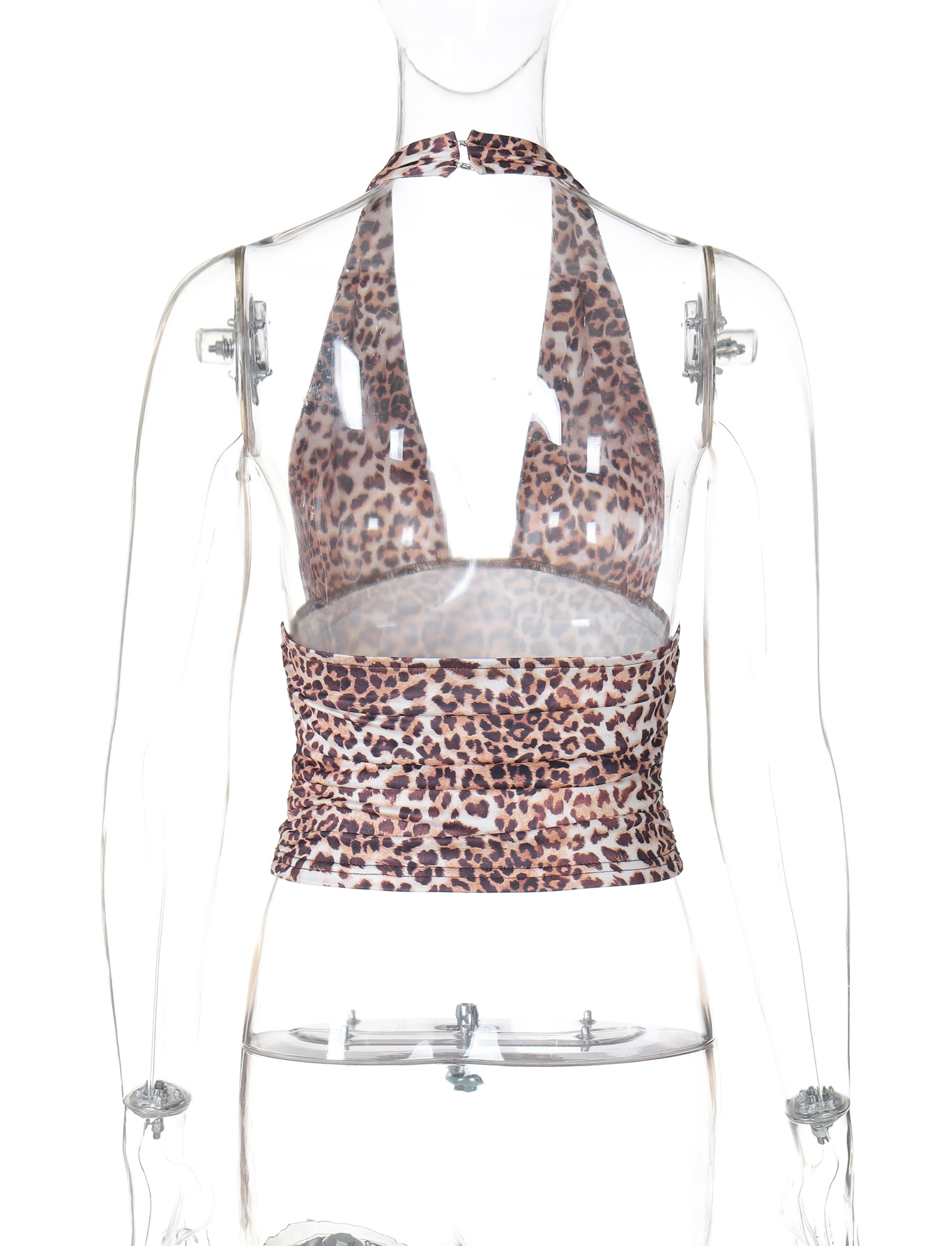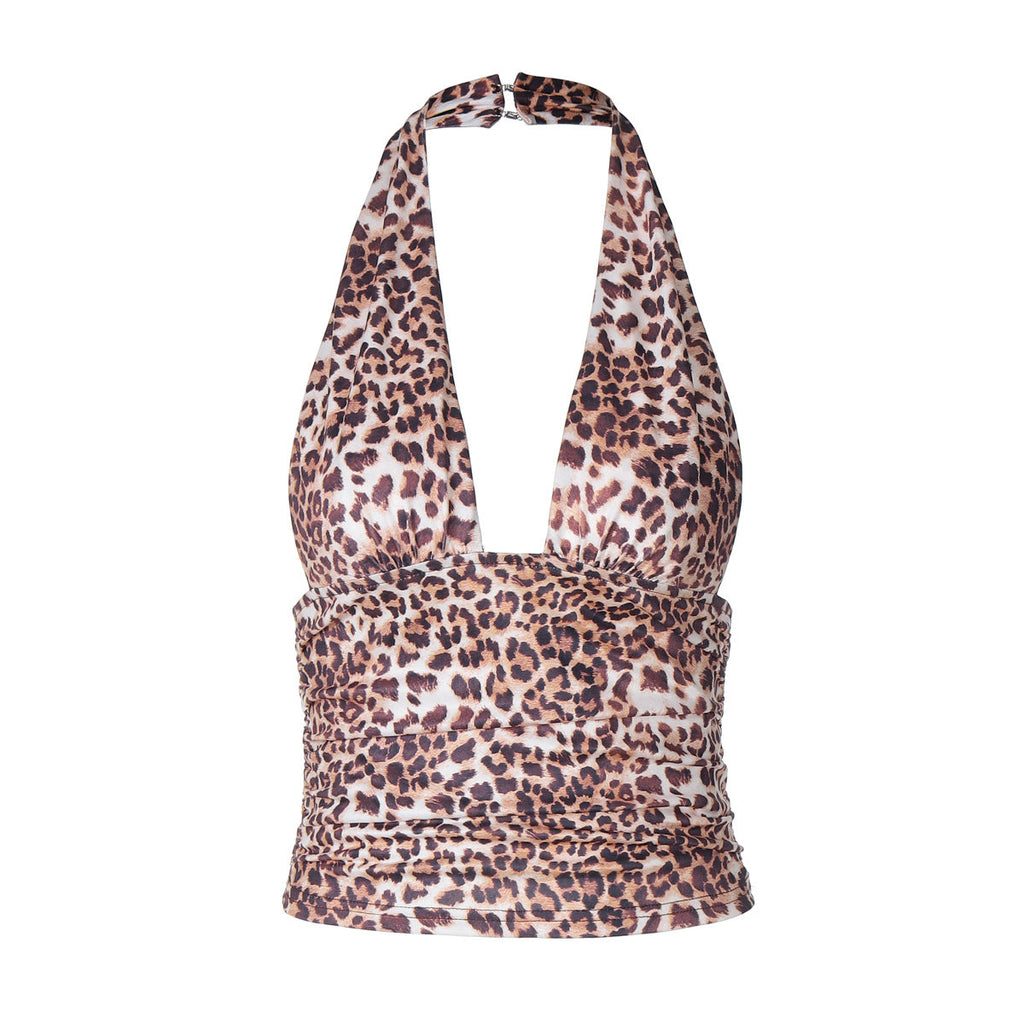 European and American women's clothing summer new leopard print halter neck bottoming vest hot girl navel-baring slim sleeveless tops female