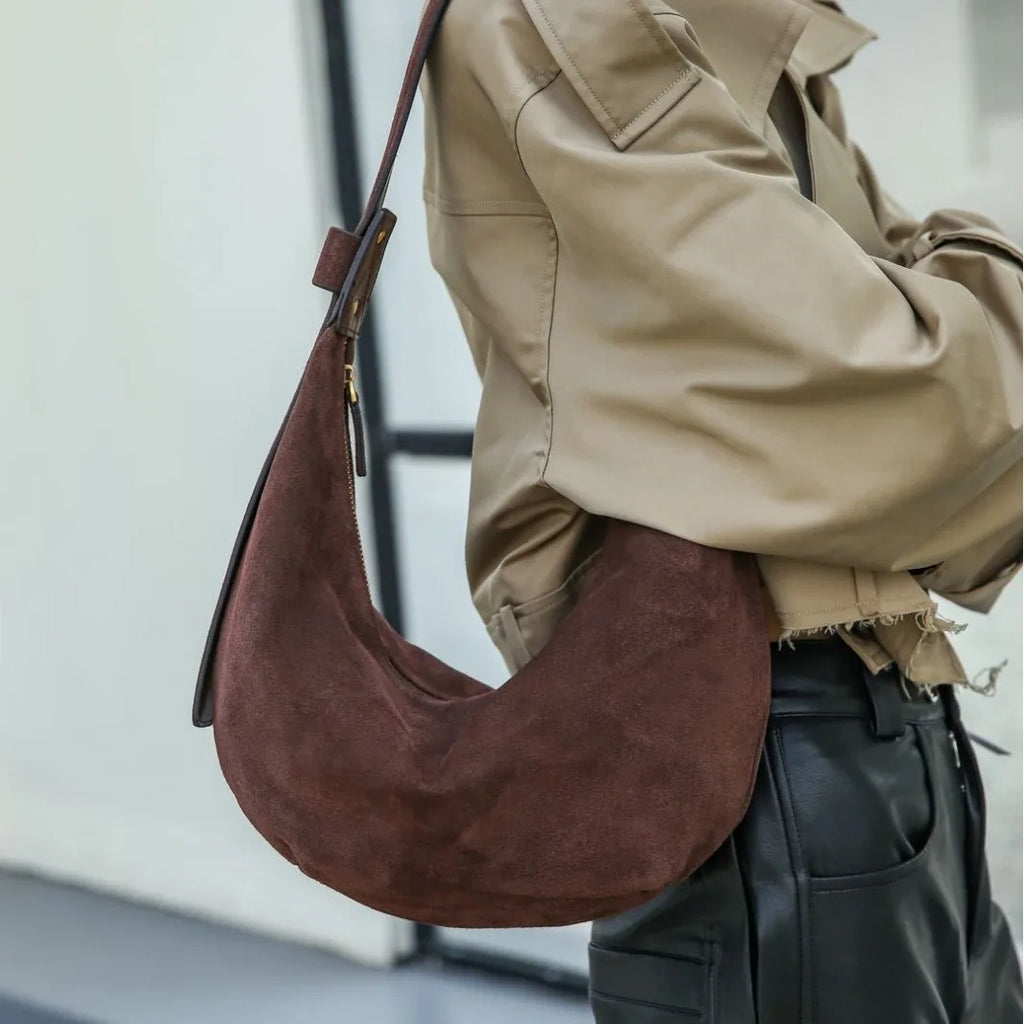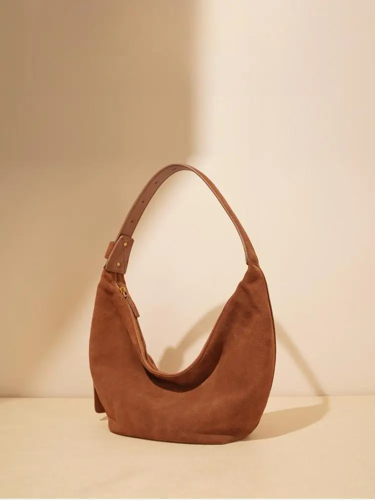 Autumn/Winter New Women's Bag Reversed Velvet Cowhide Dumpling Bag Fashion Versatile One Shoulder Crossbody Bag