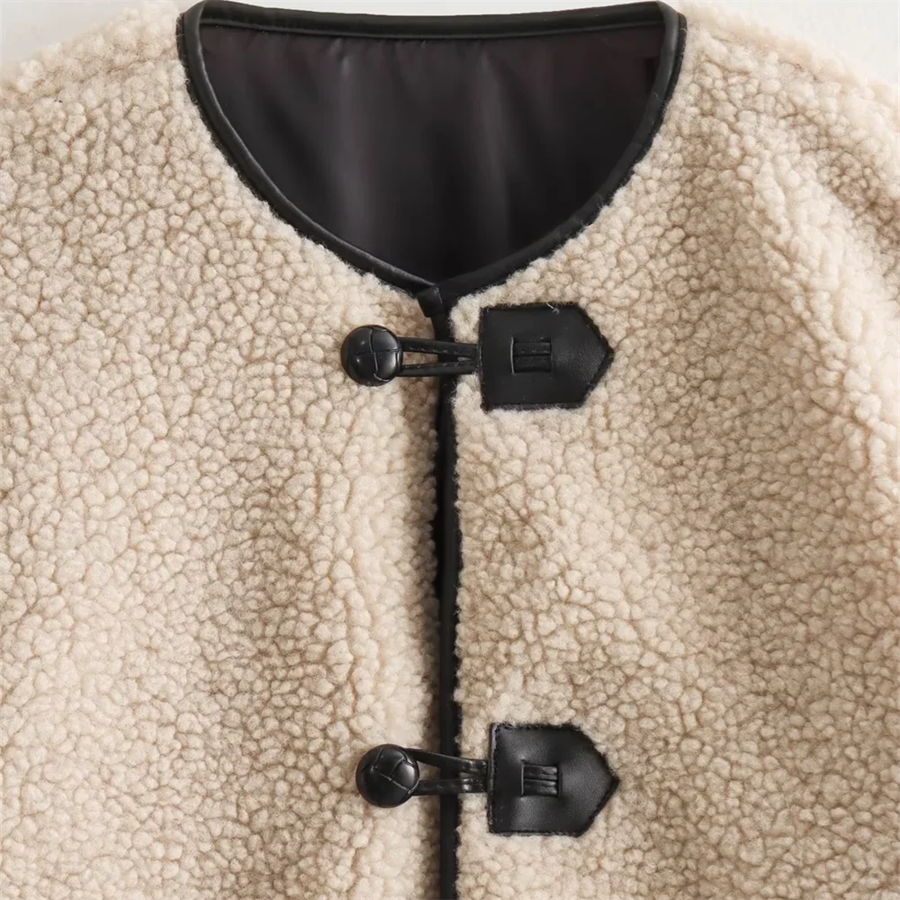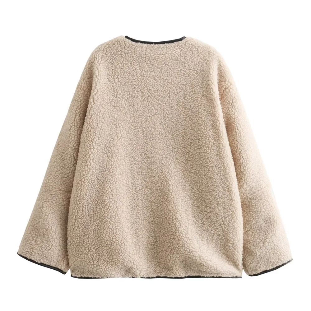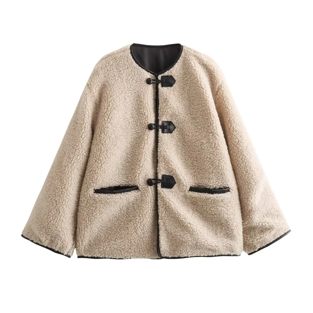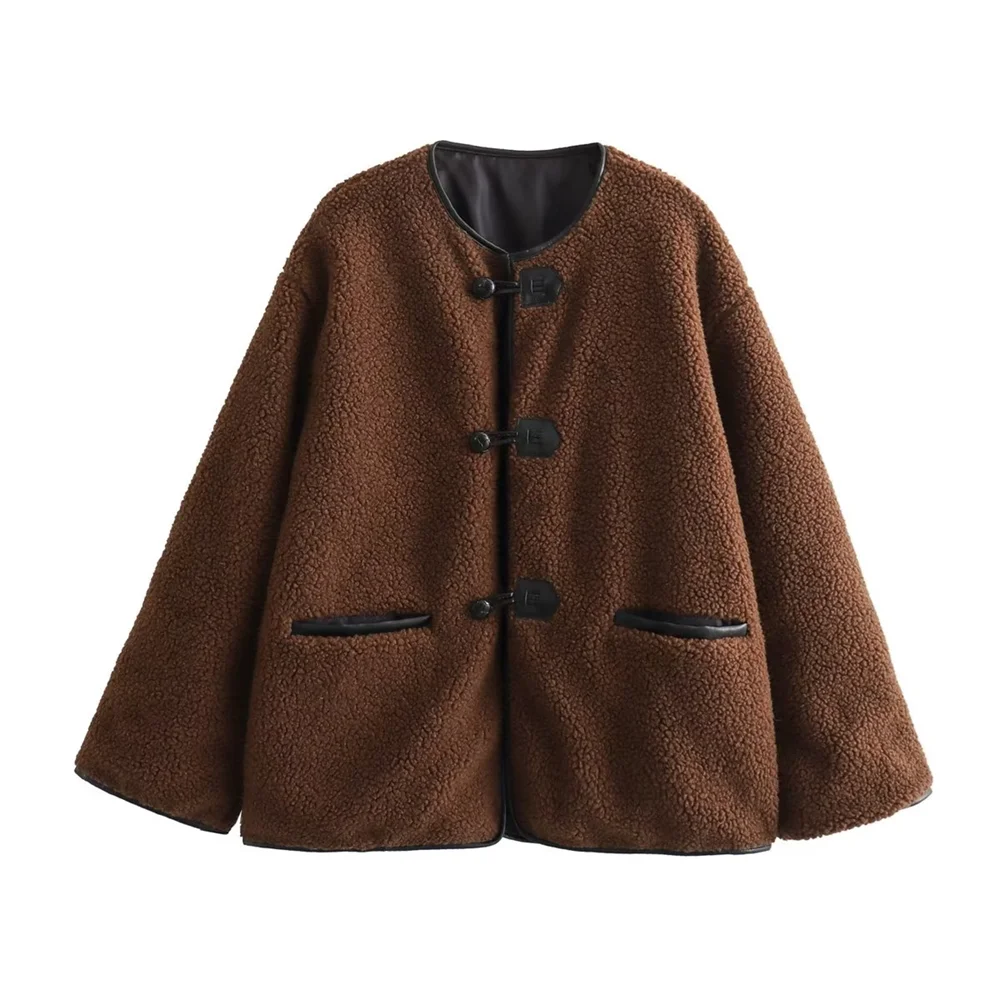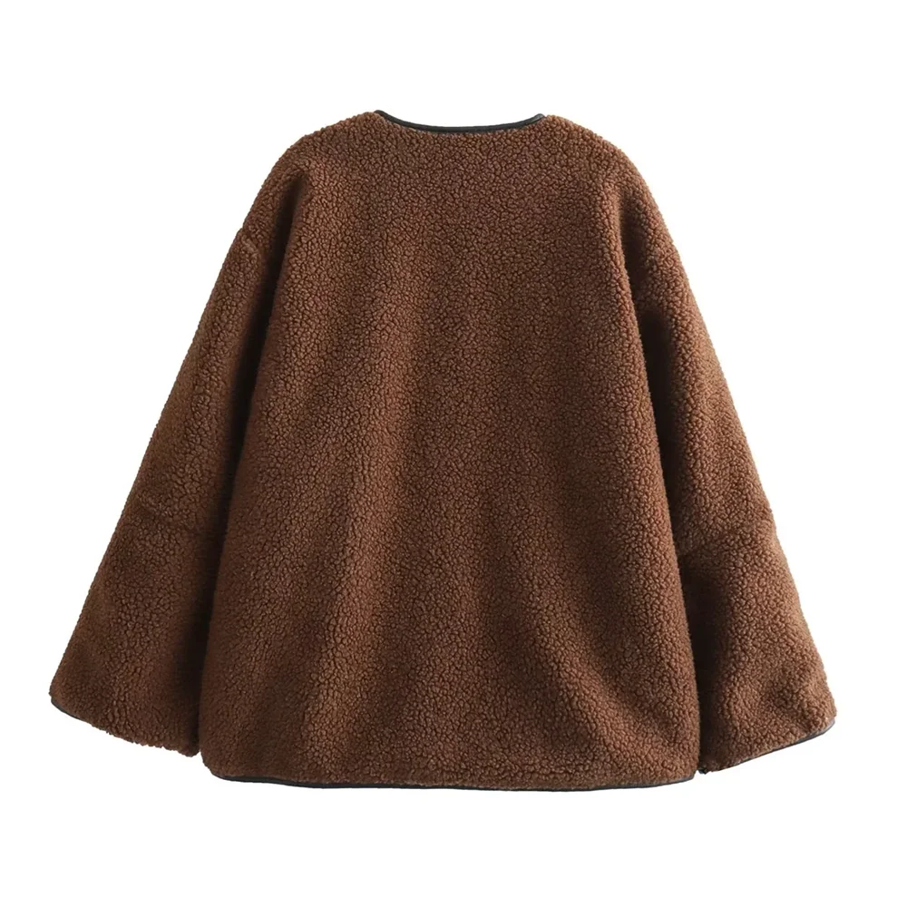 Autumn/Winter New Women's Casual Loose Style Versatile Single breasted Round Neck Lamb Fur Coat