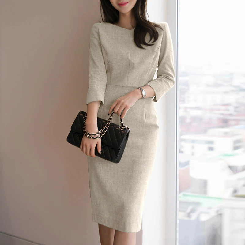 Item Type:Dress Material:100% Polyester Colors:Black,Grey,Khaki Package include:1 Dress Cutting:Slim Stretch:Not Stretchable Length:Knee Length Collar:Round Neck Sleeve Style:Regular Sleeve Length:3/4 Sleeve Closure Type:Back zipper Pattern:Solid Thickness:Standard Style:Casual,Commute,Elegant,Simple Season:Spring,Summer,Autumn Occasion:Daily,Simple,Casual,Office,Business Label: Yes Attention: 1. Due to different computers, there may be subtle color difference between the object and the image. Please don't shoot if you mind. Thank you. 2. There may be manual measurement error of 1-3cm. Please understand the inconvenience. 3. Please refer to the real object. The model pictures are for reference only. 4. Attention!!! Please check the size chart carefully before ordering." |