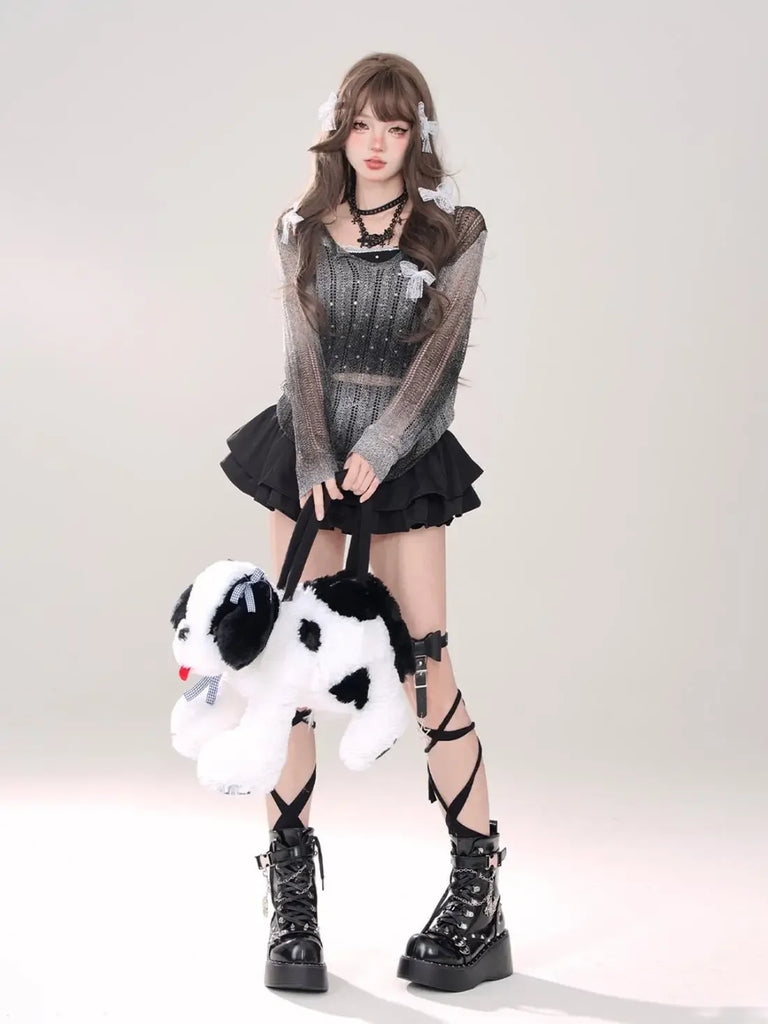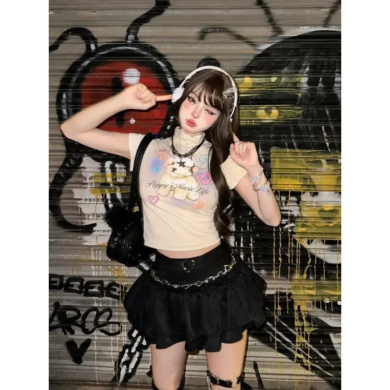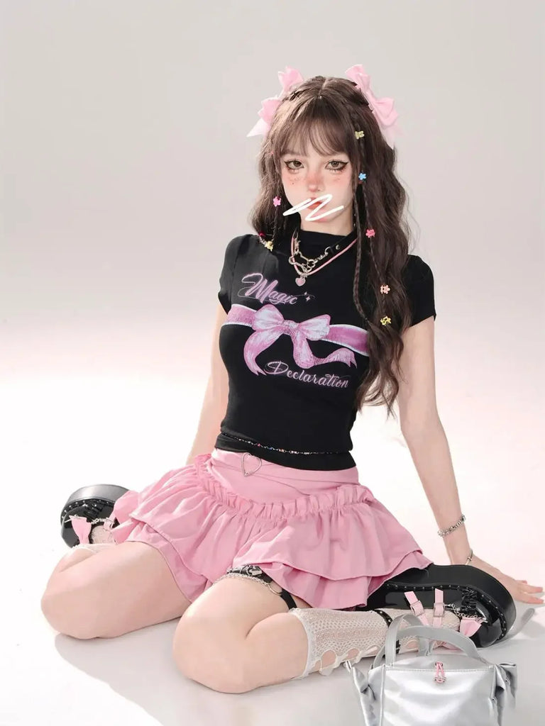 Black A- Line Mini Dress For Women Slimming Cake Skirt Smooths Your Silhouette Legging-Length Skirt Female