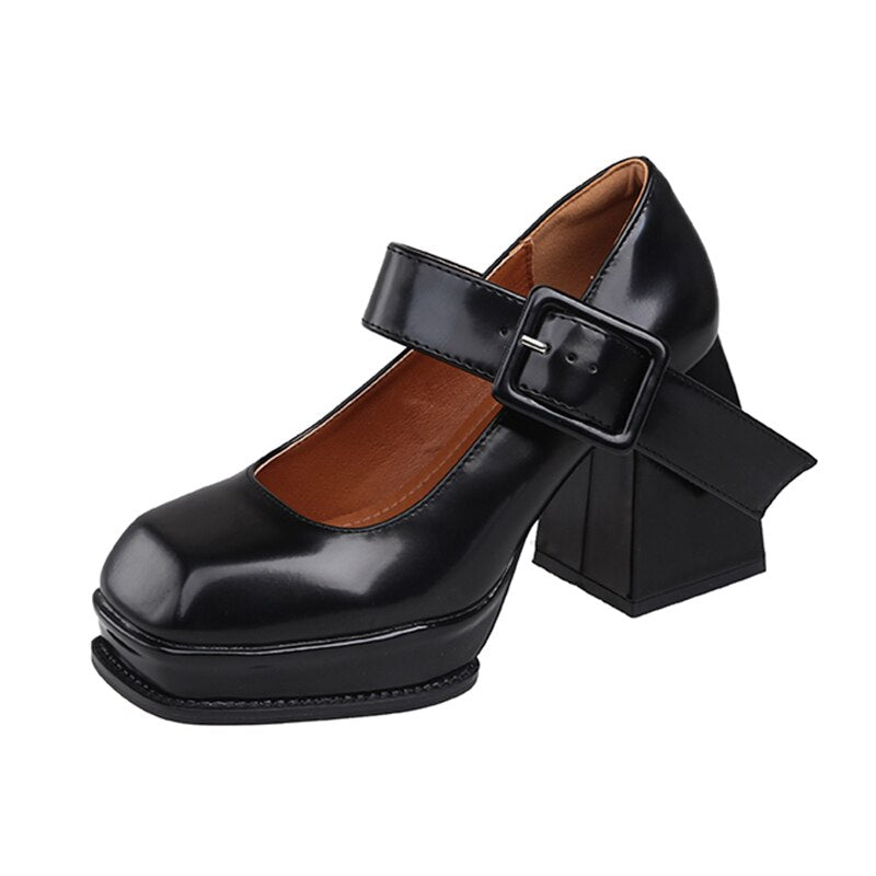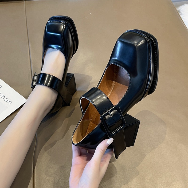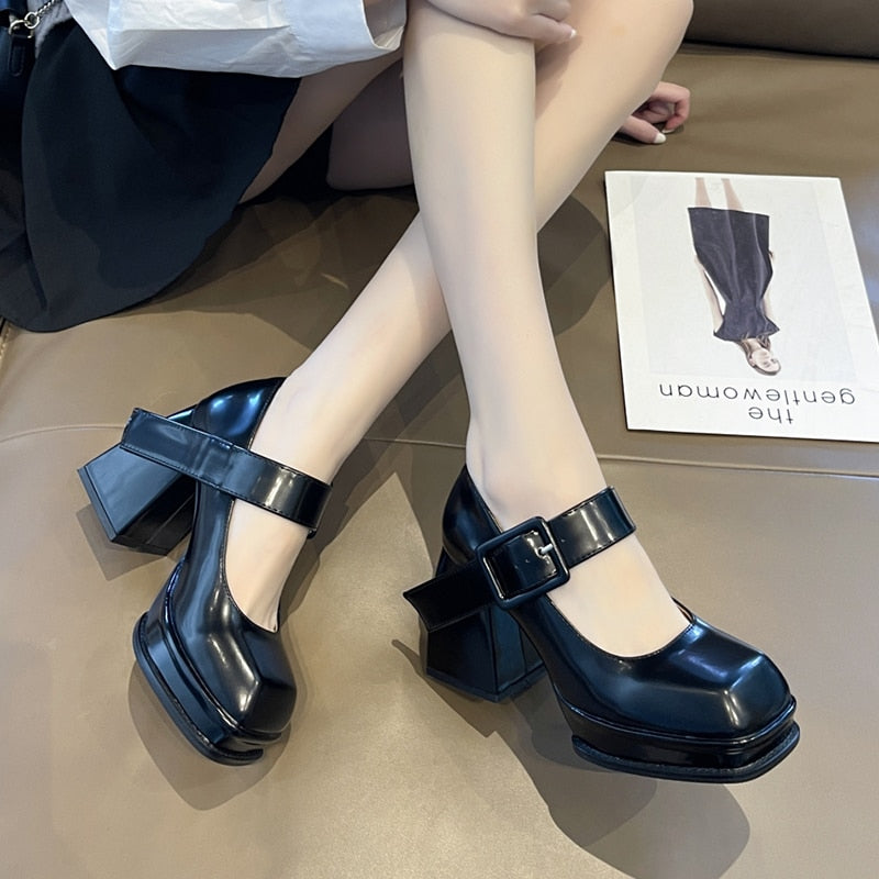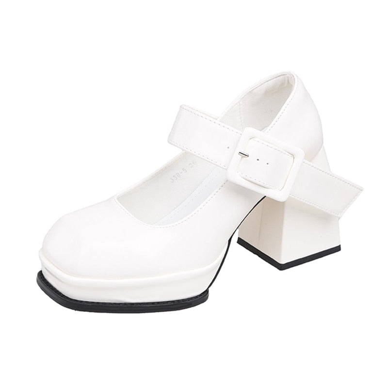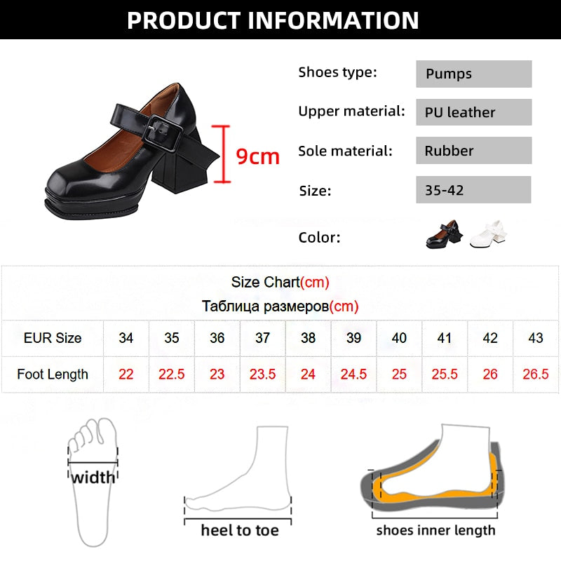 Black White Platform Mary Jane Shoes for Women Heels Retro Square Toe Buckle Women Pumps Super High Heels Dress Shoes