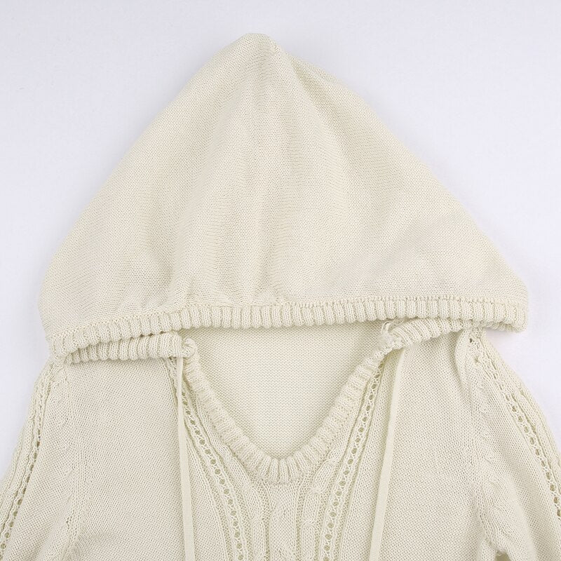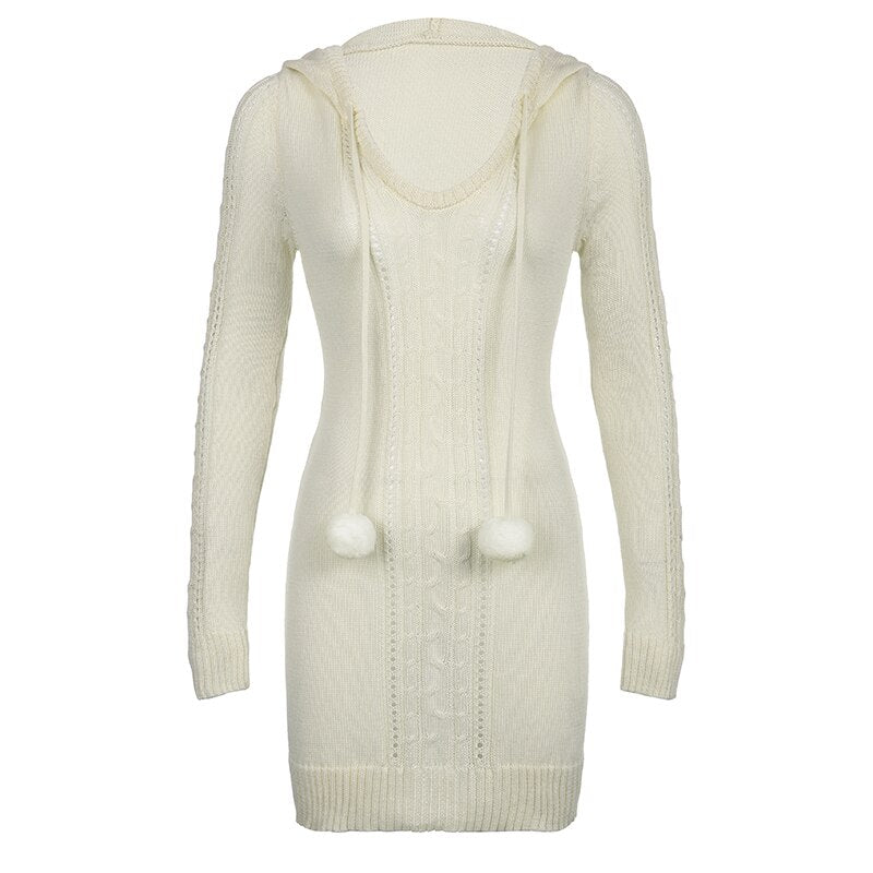 Hooded Knitted Sweater Hairball Mini Dress