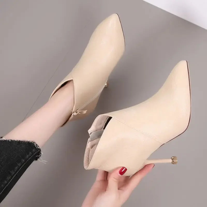 Booties Black Footwear Sexy Female Ankle Boots Heeled Very High Heels Short Shoes for Women Y2k Quality Goth Pu New Rock in Hot