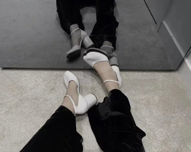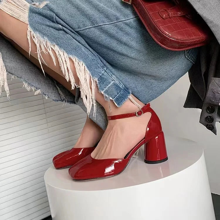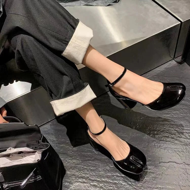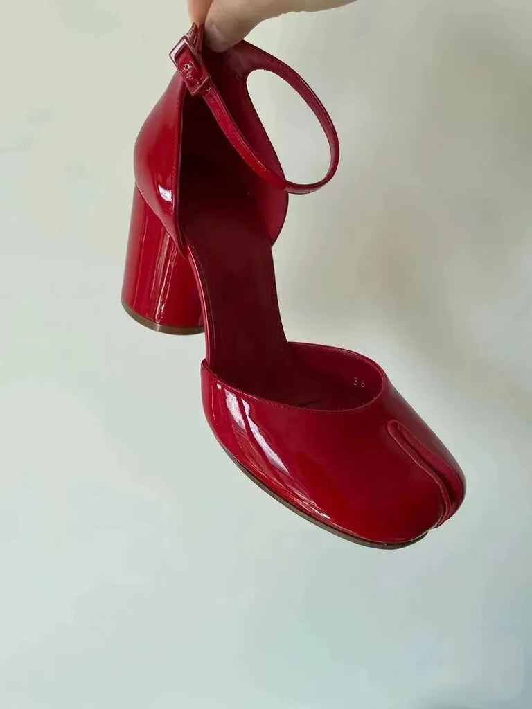 C148 New Spring Summer 8cm High Heel Tabi Shoes Elegant Patent Leather Women Split Footwear Strap Buckle Lady Moccasins Shoes
