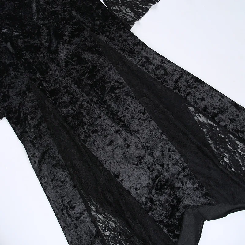 Chain Long Dresses Gothic Party Velvet High Slit Lace Patchwork Tube Maxi Dresses Bodycone Street Wear Party Dress