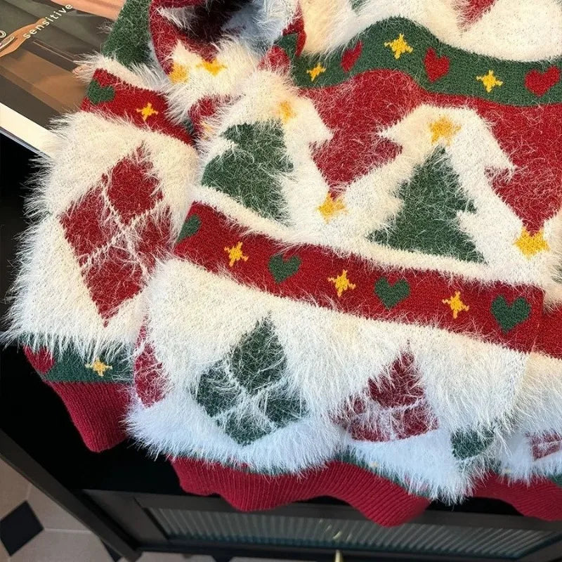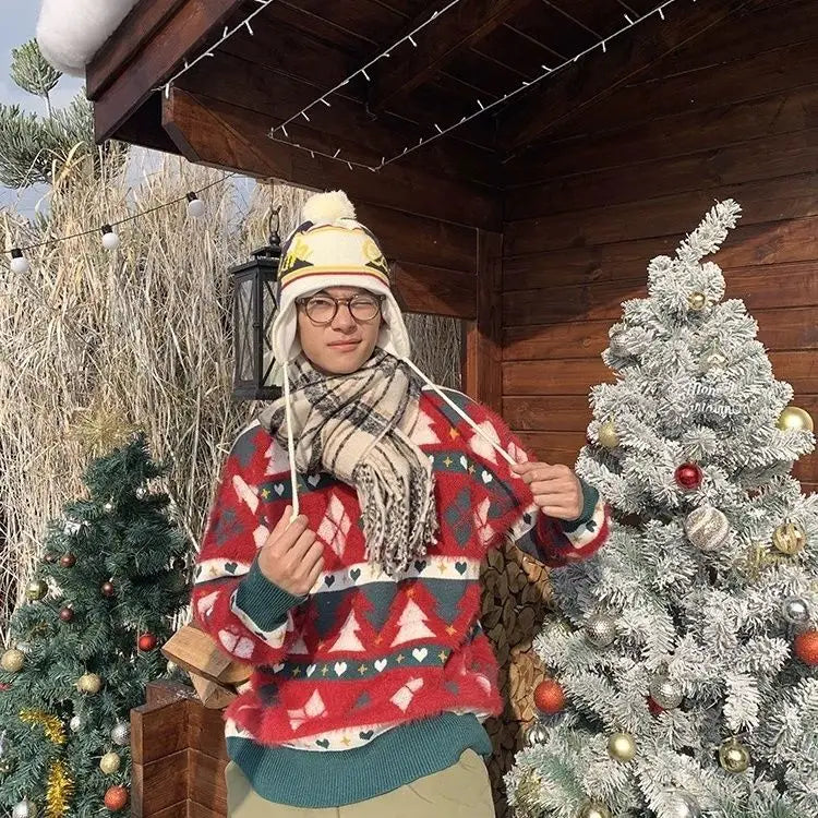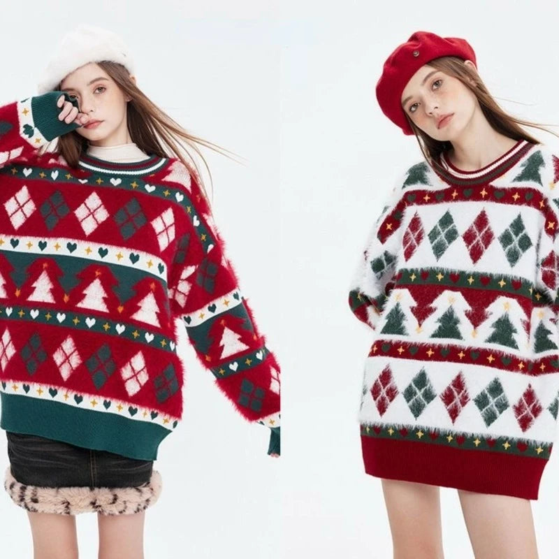 Christmas New Fashion Atmosphere Contrast Color Sweater Men And Women Couples Pullover Sweater Casual Joker Loose Top Tide Brand