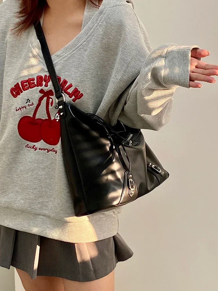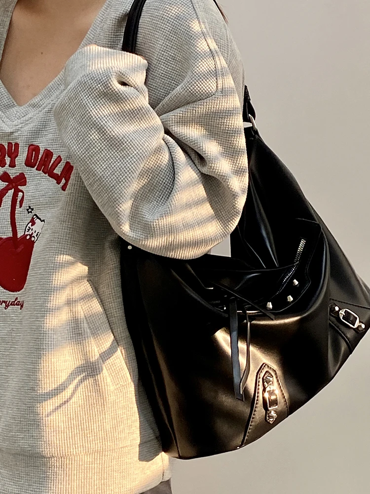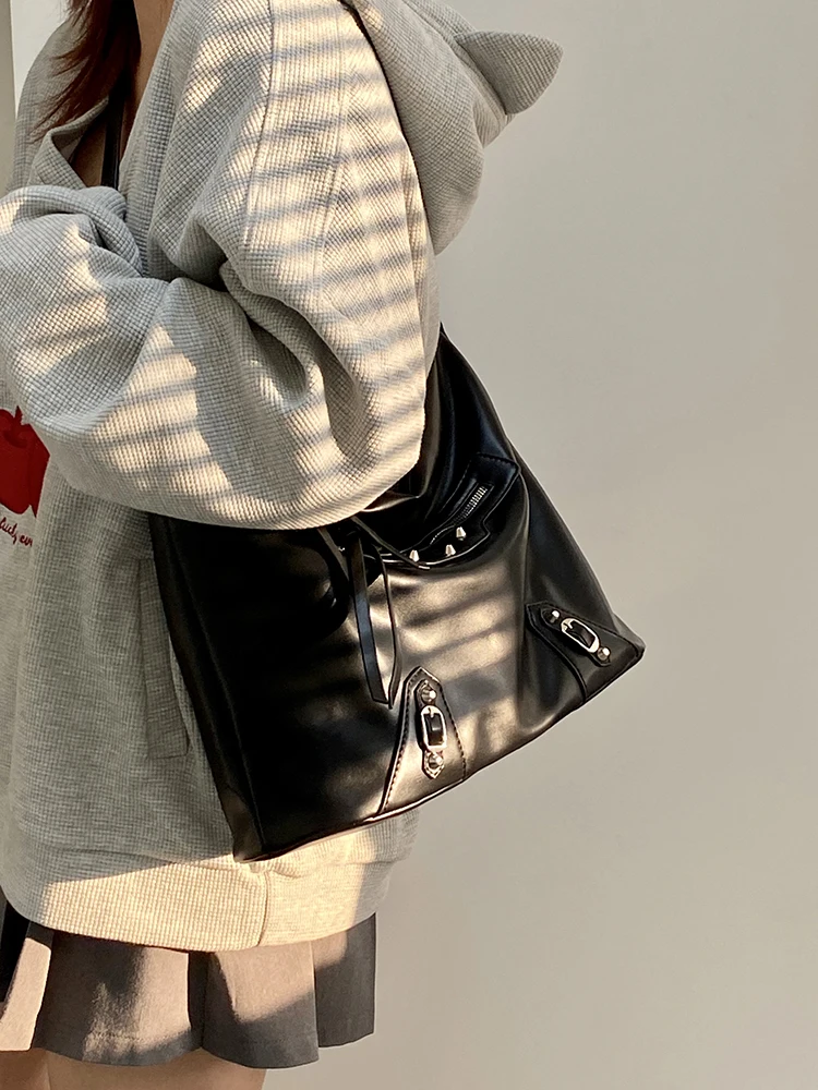 Cool Punk Women's Tote Shoulder Bag Retro Locomotive Female Crossbody Bags Large Capacity Ladies Travel Commute Handbags
