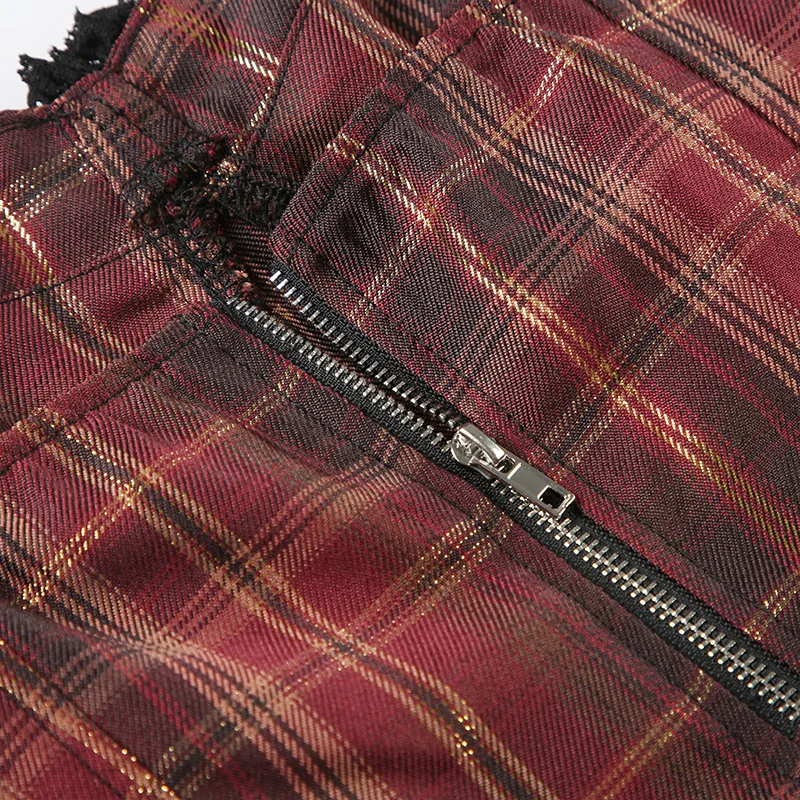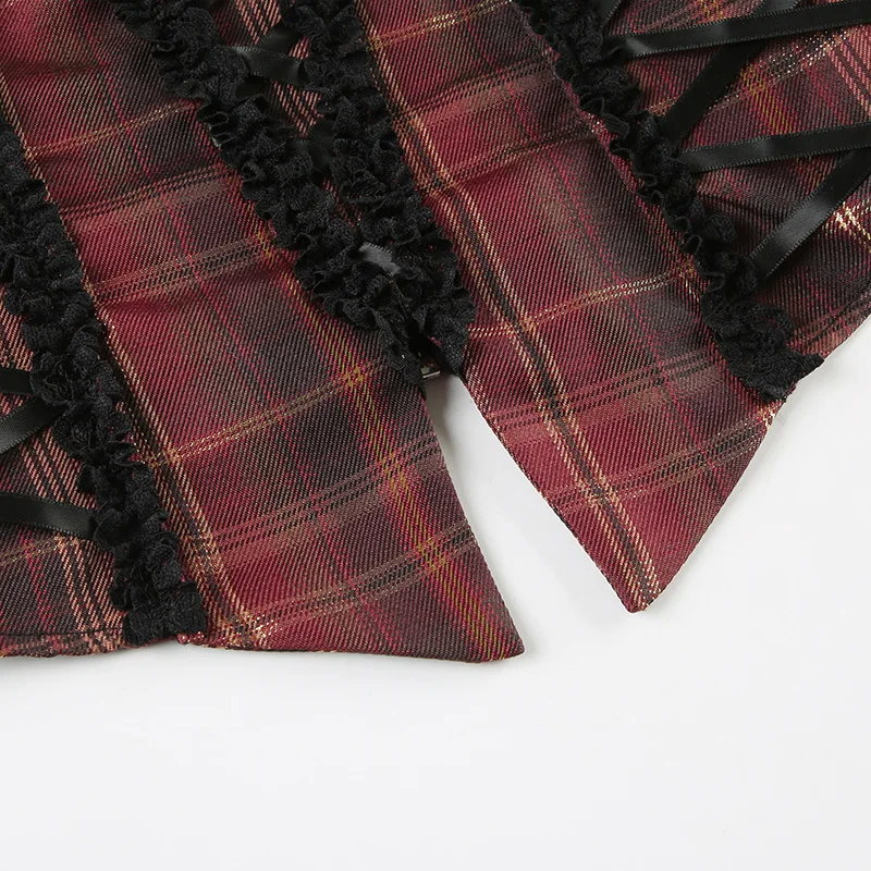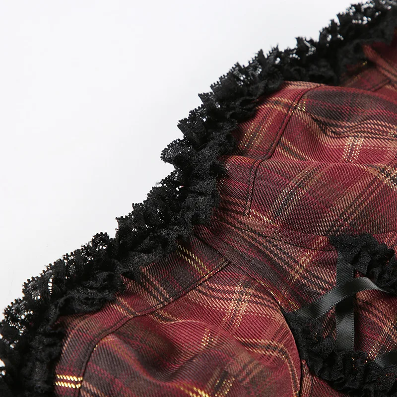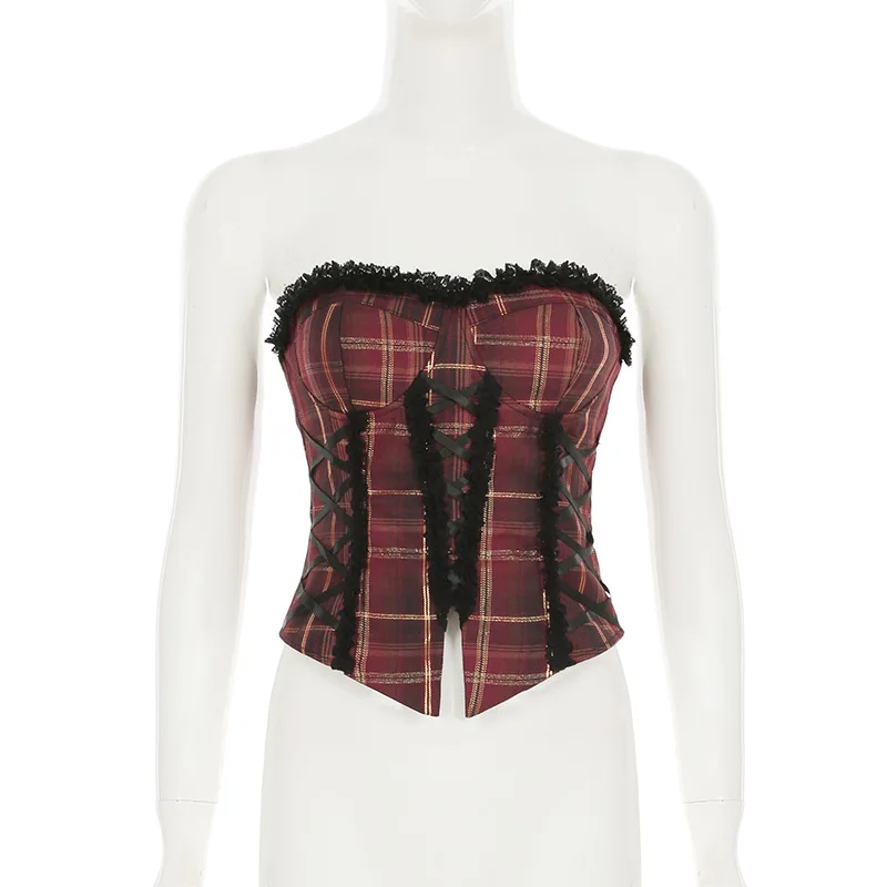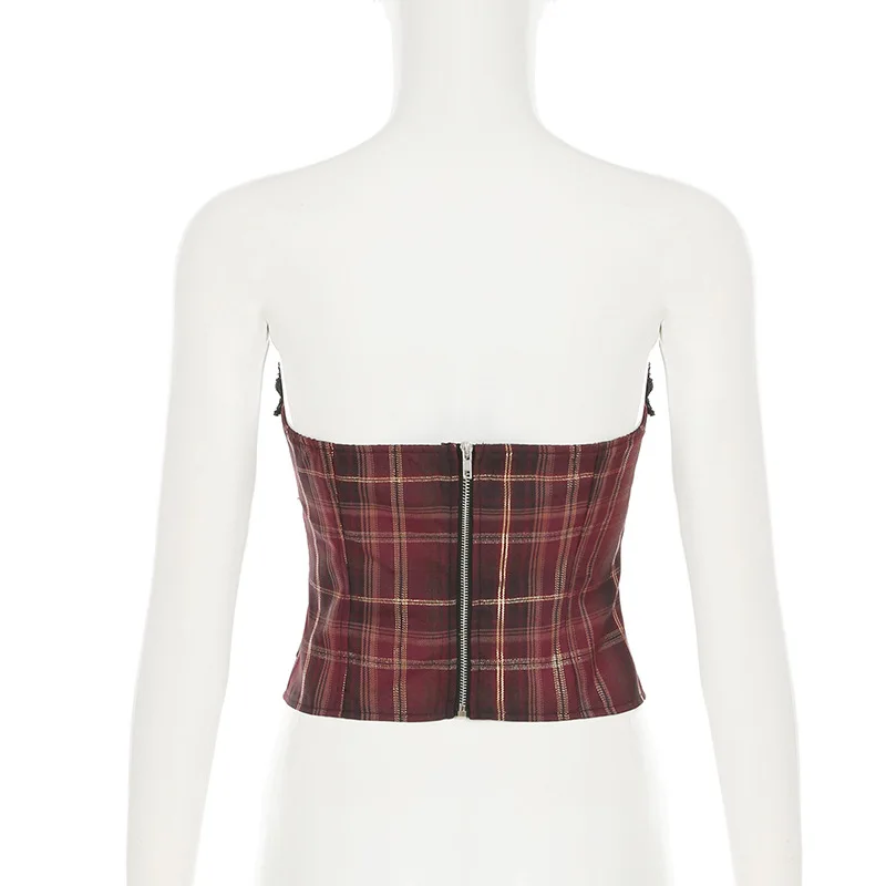 Coquette Plaid Print Tube Top Backless Bandeau Vest with Lace Trim Zipper Closure Women Streetwear Aesthetic Teen Girl Clothes