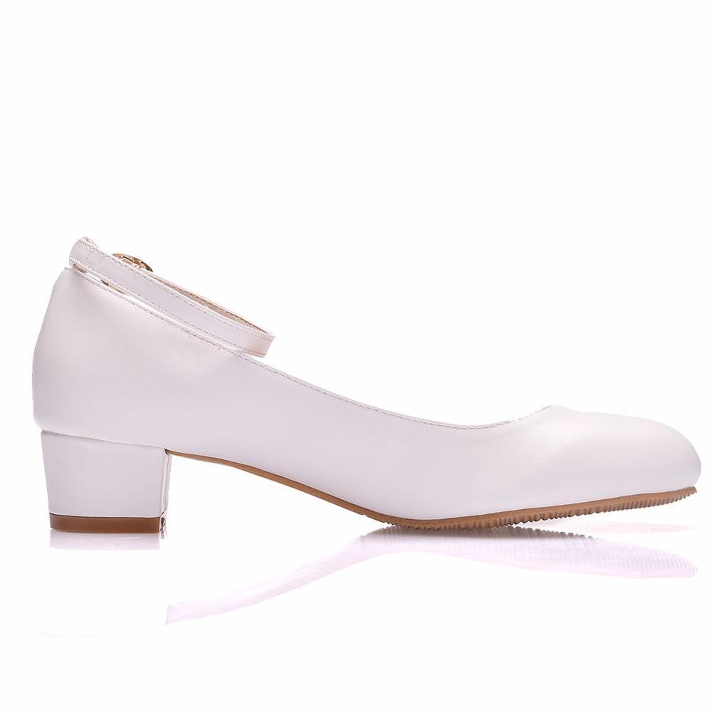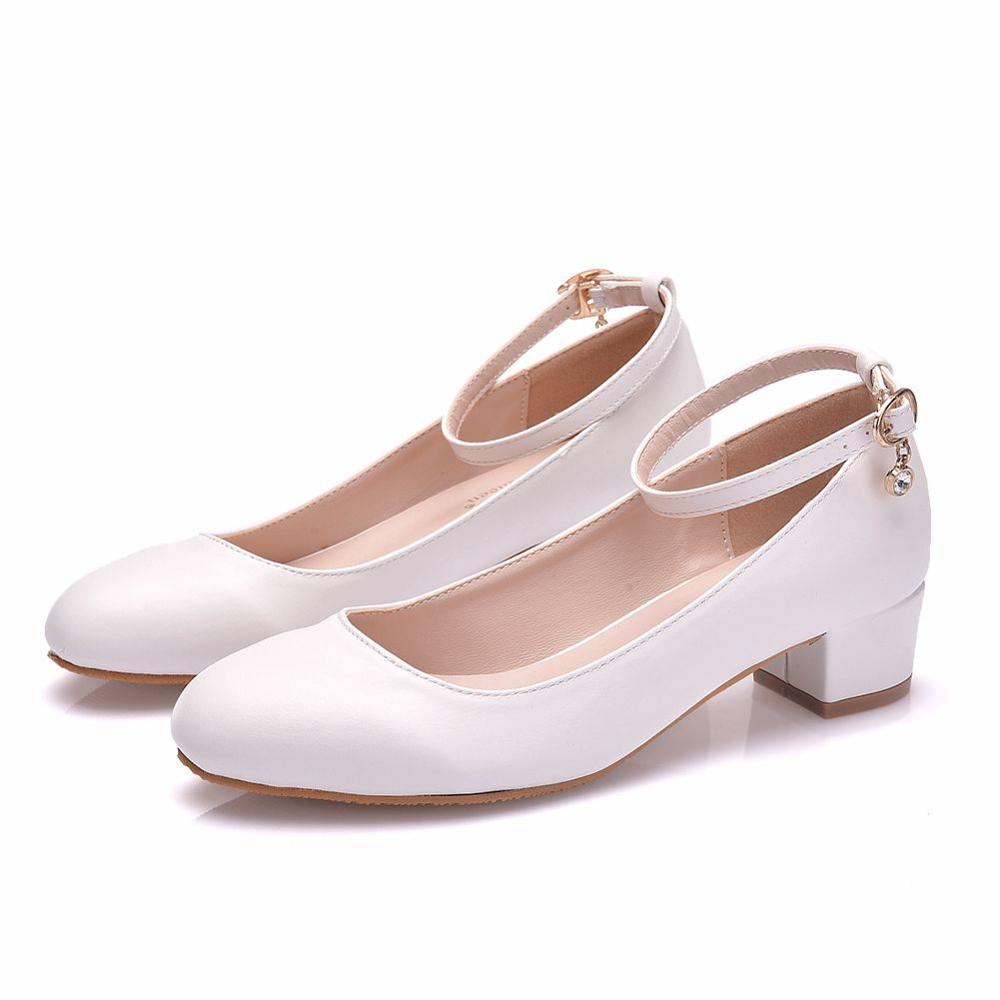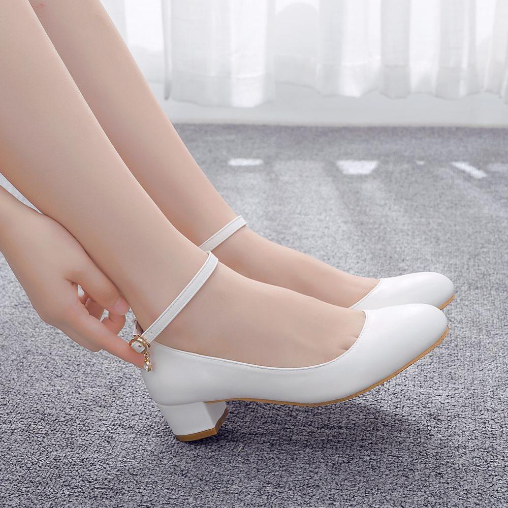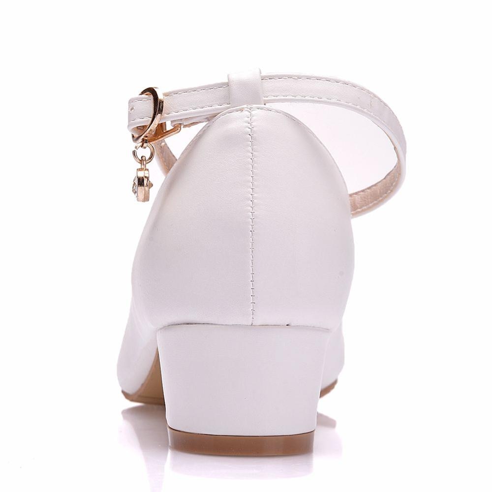 Crystal Queen White Women's Shoes Sexy Bride Party 3CM Pointed Toe Pumps Round Head Shallow Mouth Buckle Thick High Heels