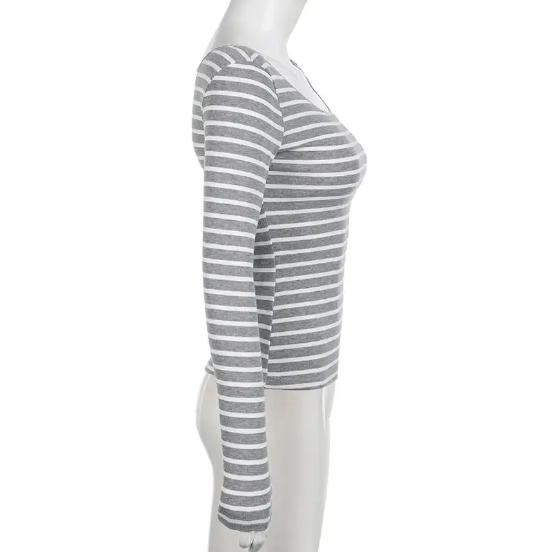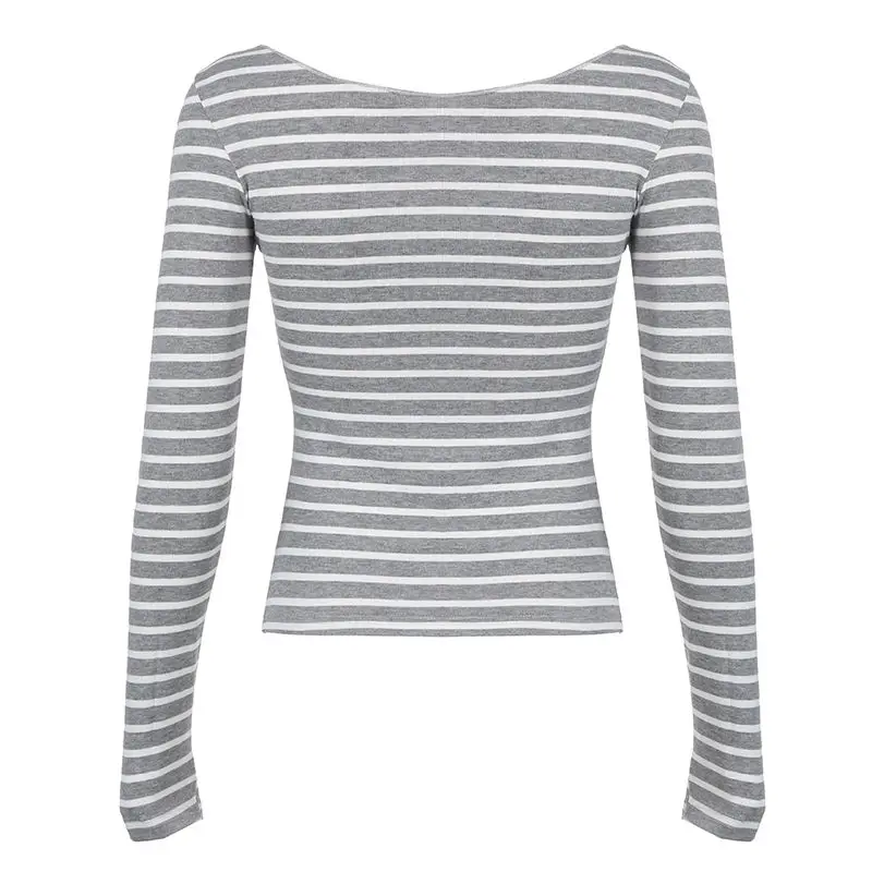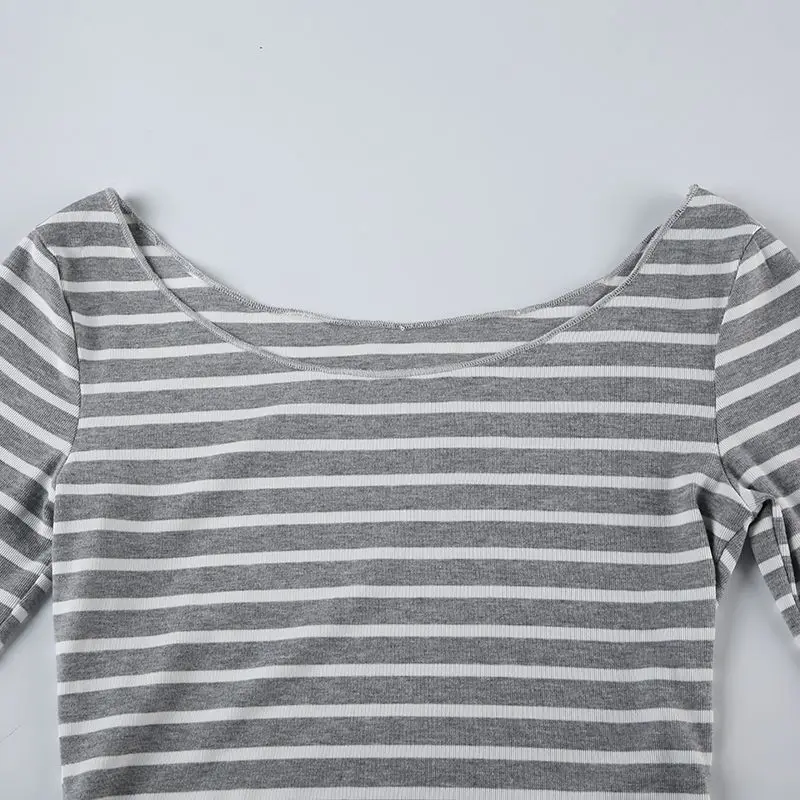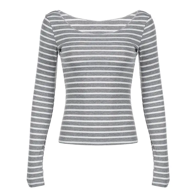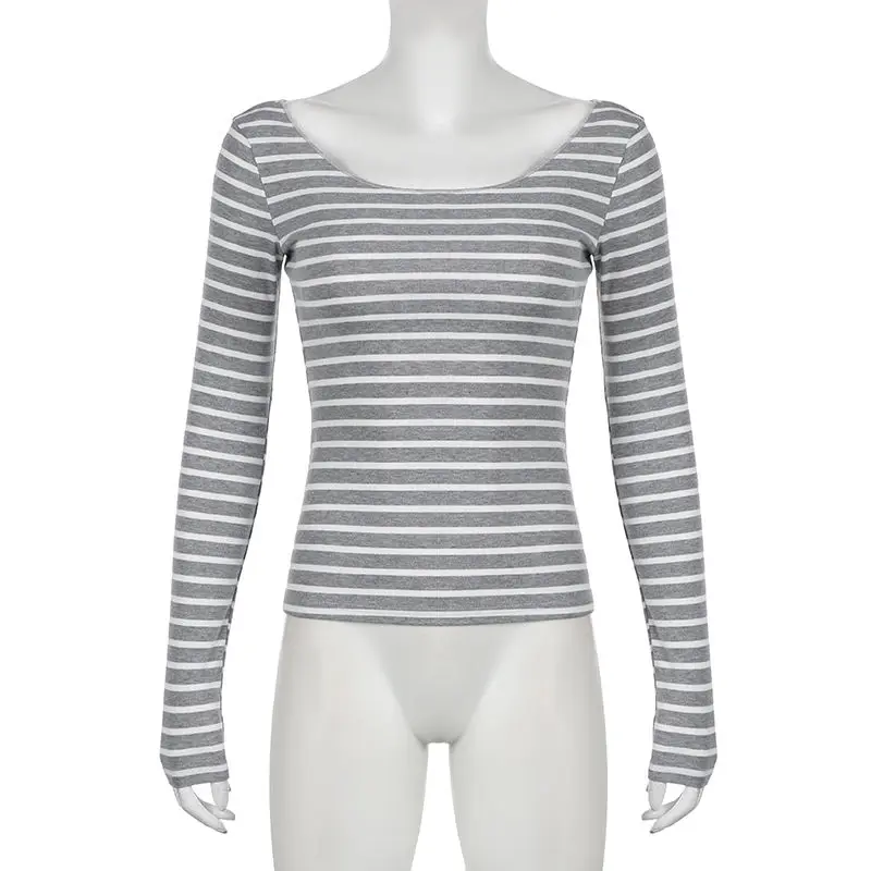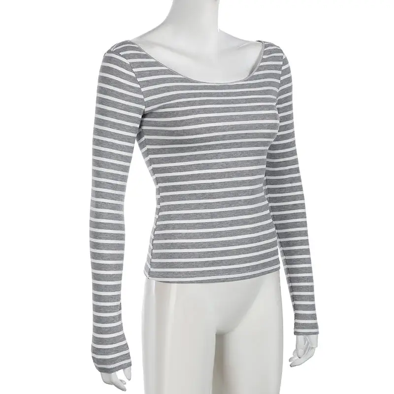 Off Shoulder Striped Crop T Shirts Women Vintage Harajuku Fashion Long Sleeve Tess Female Casual Japanese Y2k Style Top