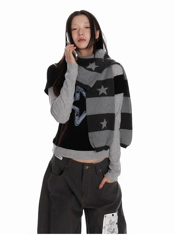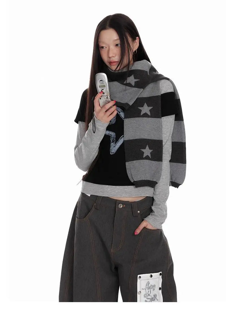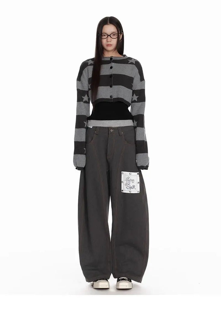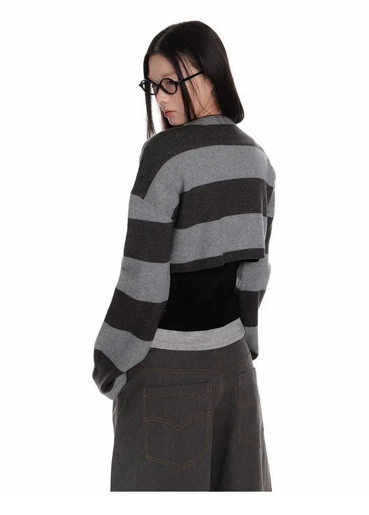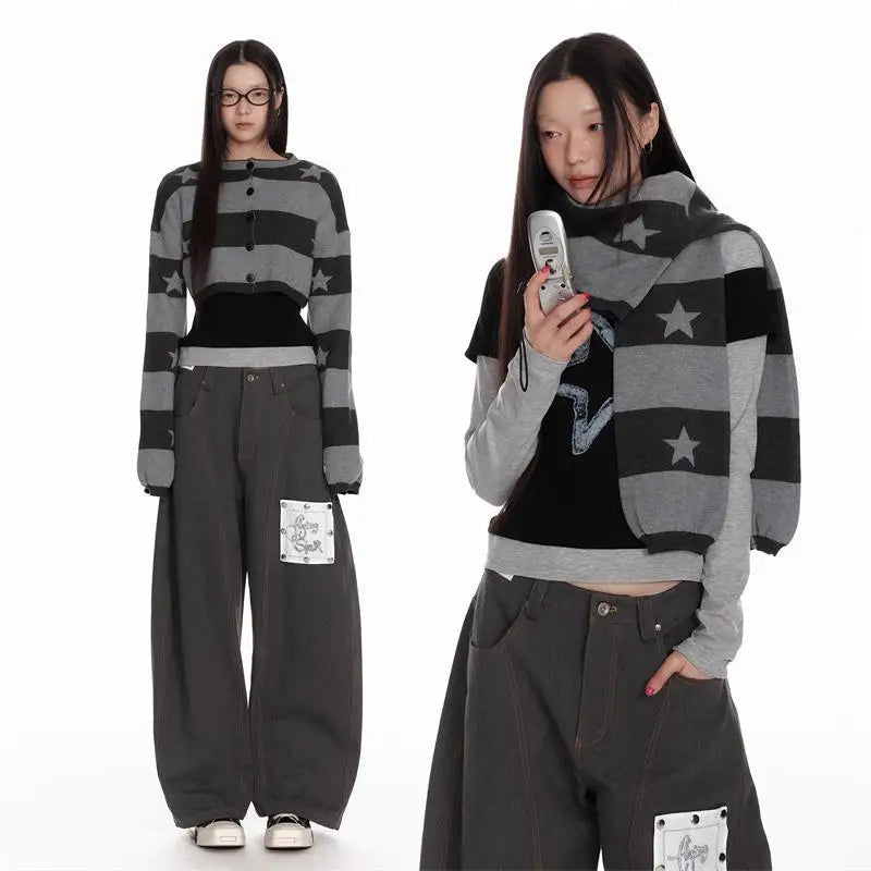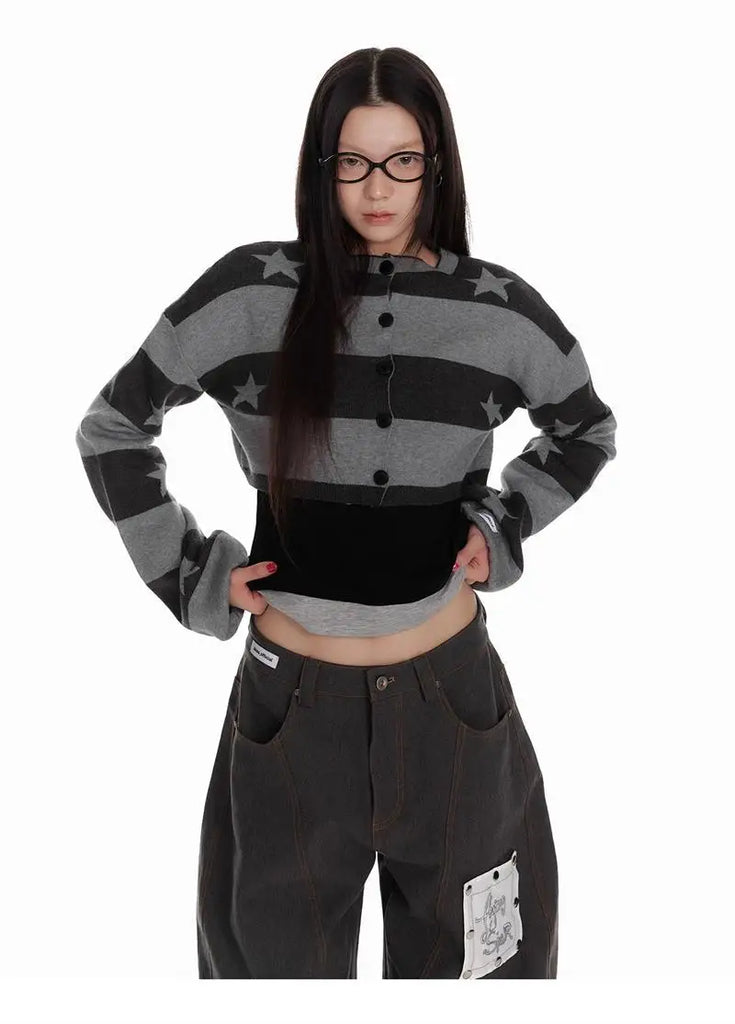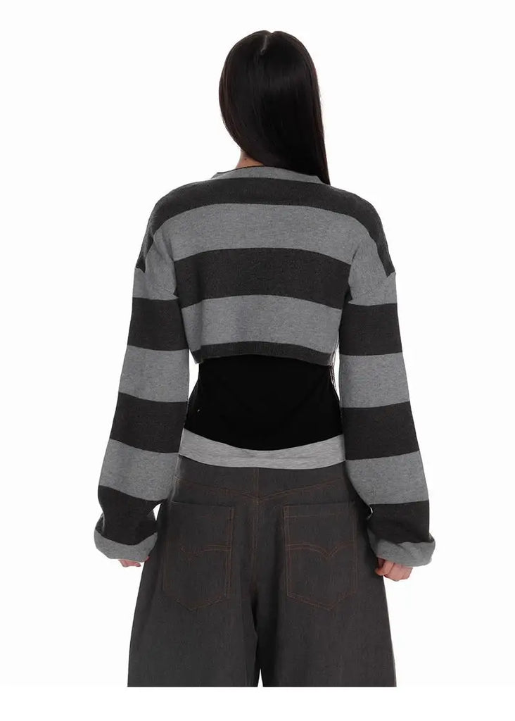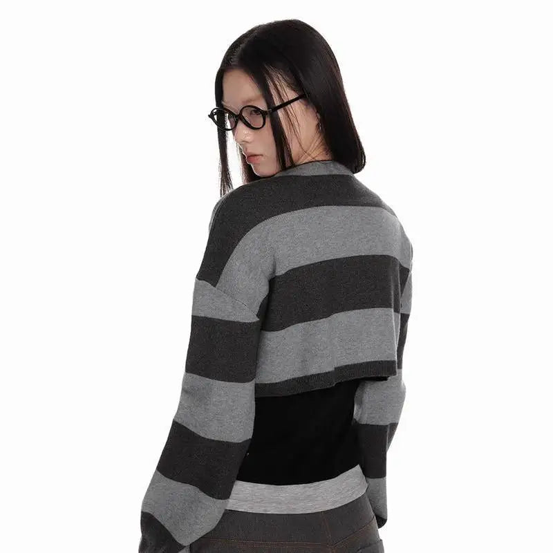 Deeptown Vintage Striped Knitted Cardigan Women Harajuku Y2k Crop Tops American Retro Gothic Streetwear Cardigan Aesthetics