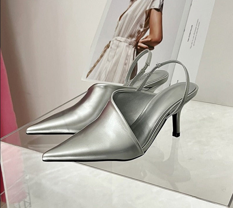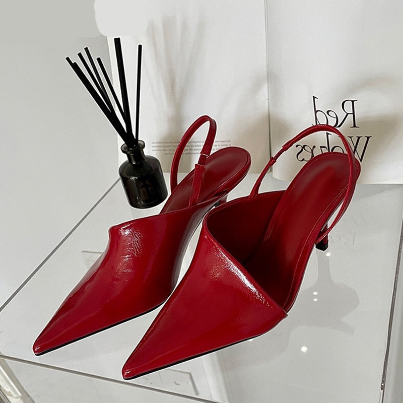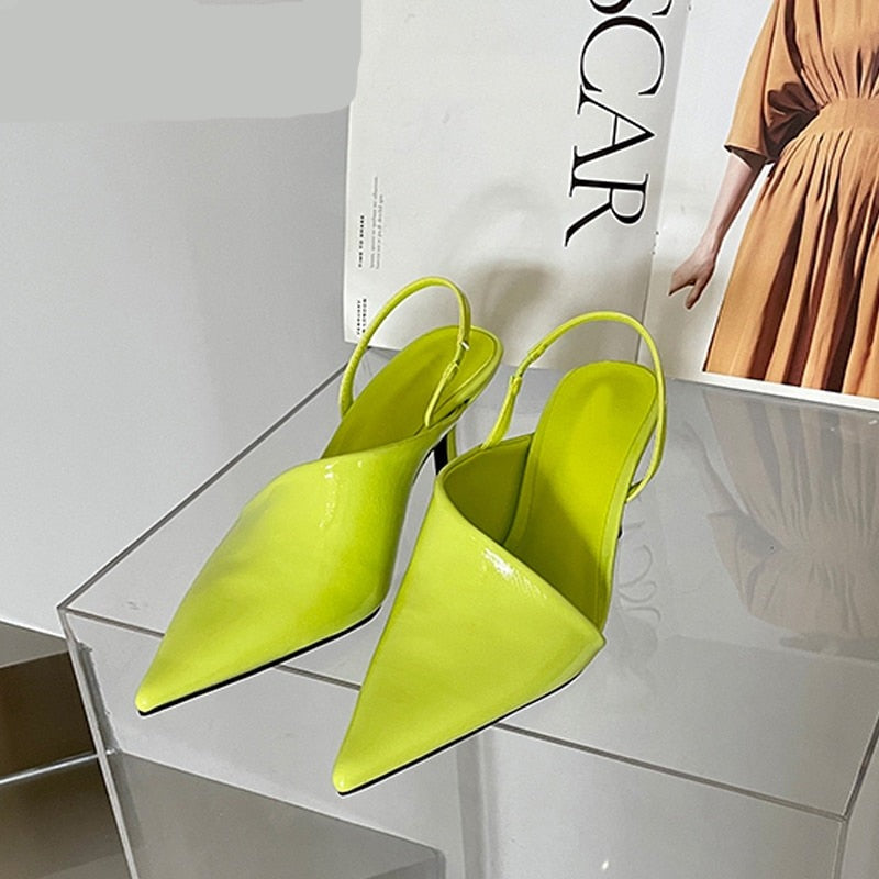 Spring New Women Slingback Pumps Sandals Pointed Toe Slip On Thin High Heel Ladies Elegant Shoes Sanda