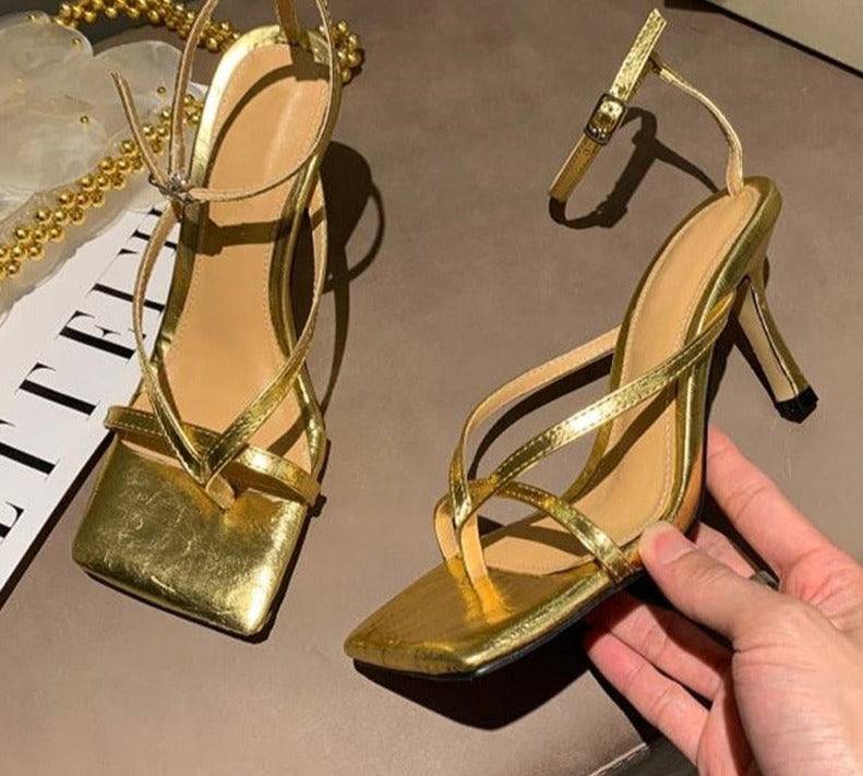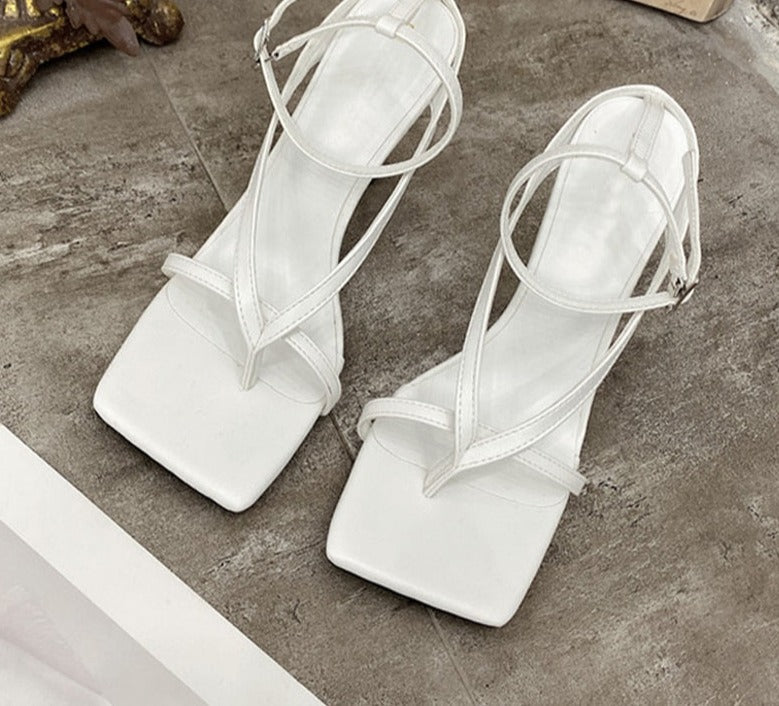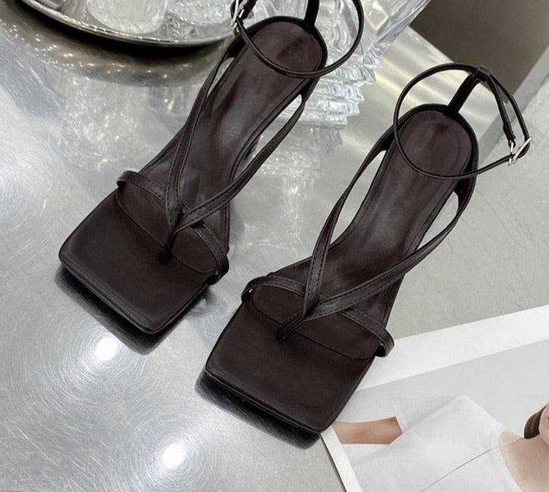 Gladiator Sandals High Heels Women Fall Best Street Look Females Square Head Open Toe Clip-On Strappy Shoes