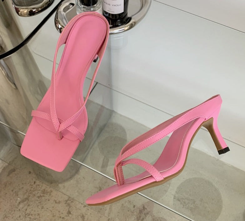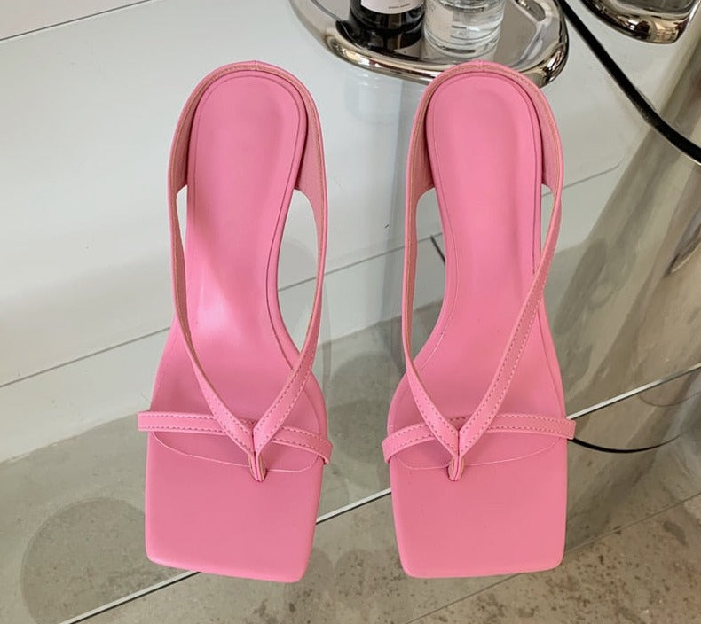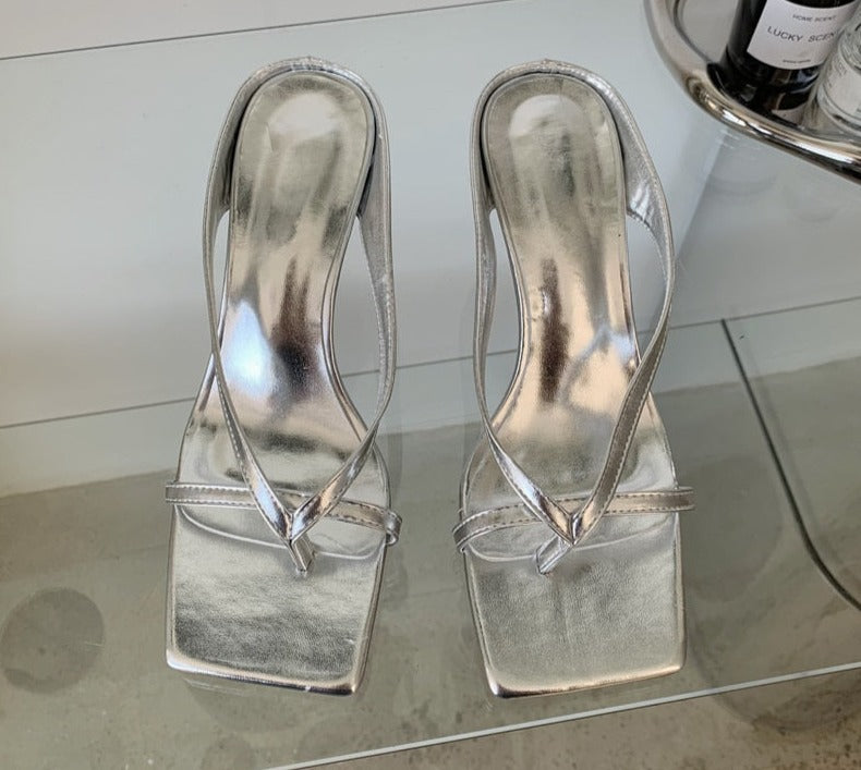 Golden Slipper Low High Heels Shoes Fall Best Street Look Females Square Head Open Toe Clip-On Strappy Sandals Women