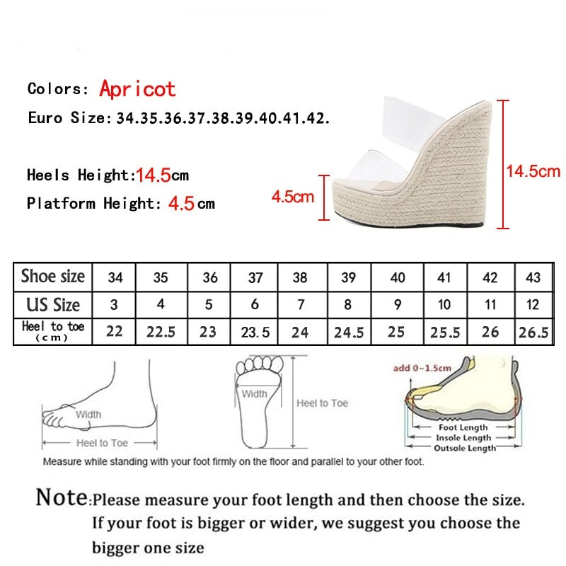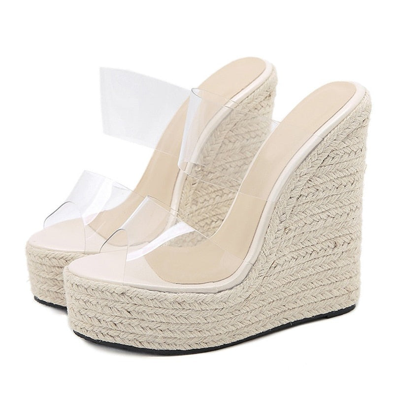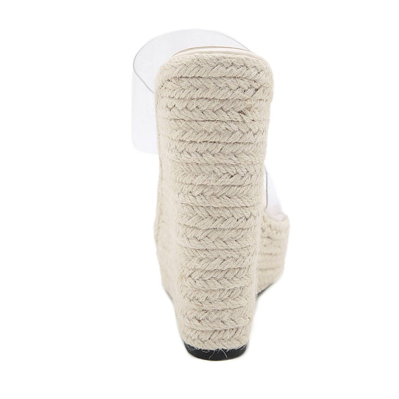 Summer PVC Transparent Peep Toe Cane Straw Weave Slippers Platform Wedges Sandals Women Fashion High Heels Female Shoes