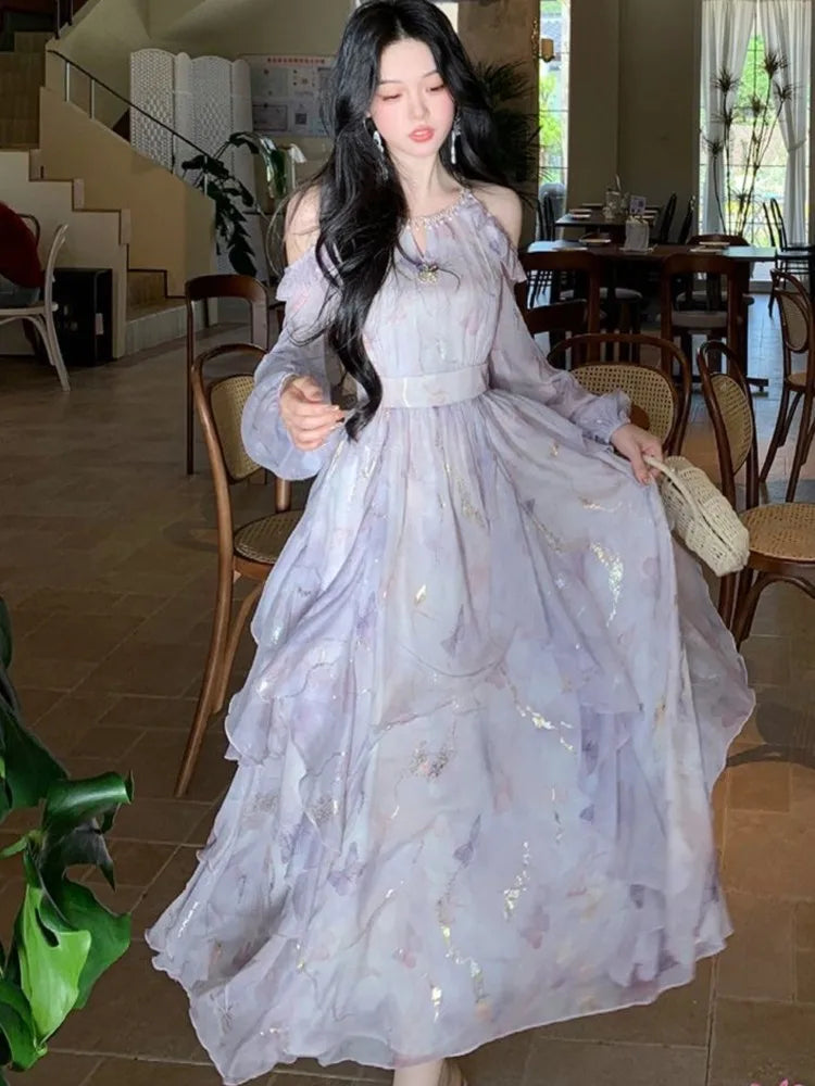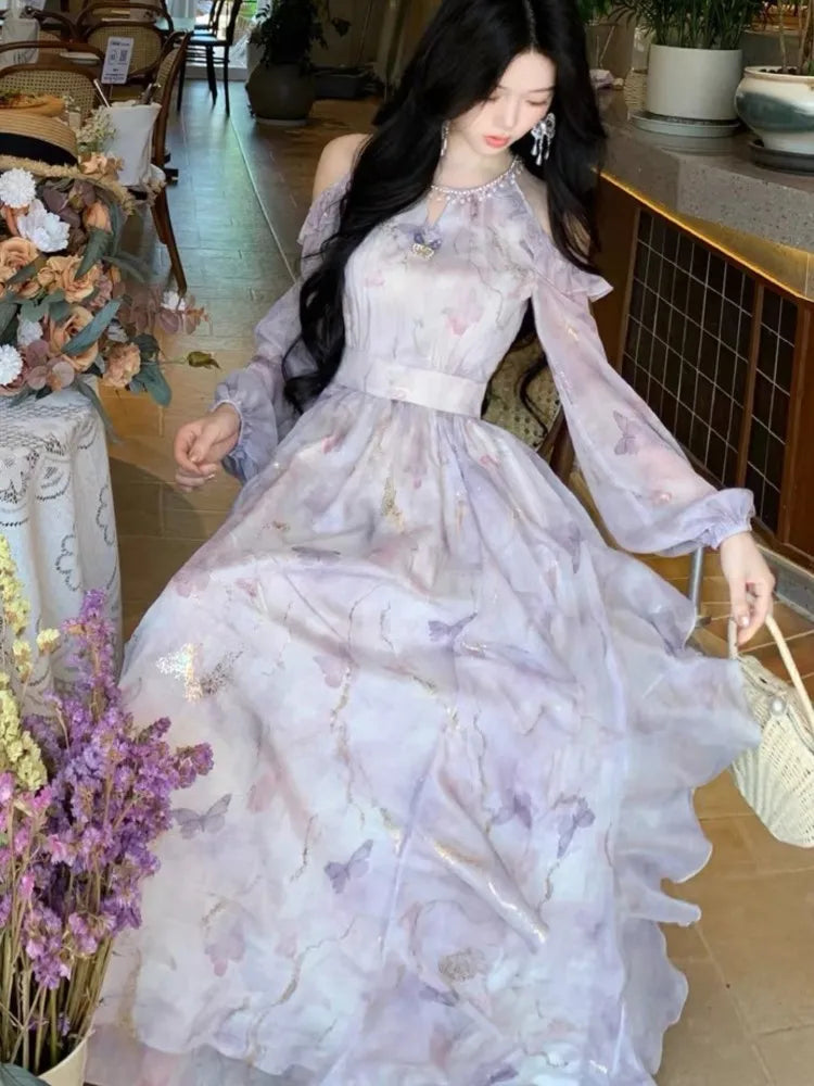 Elegant and Chic Women Floral Midi Dress Long Sleeve Vintage Party Birthday Vestidos Female A-Line Mujers Fall Clothes New